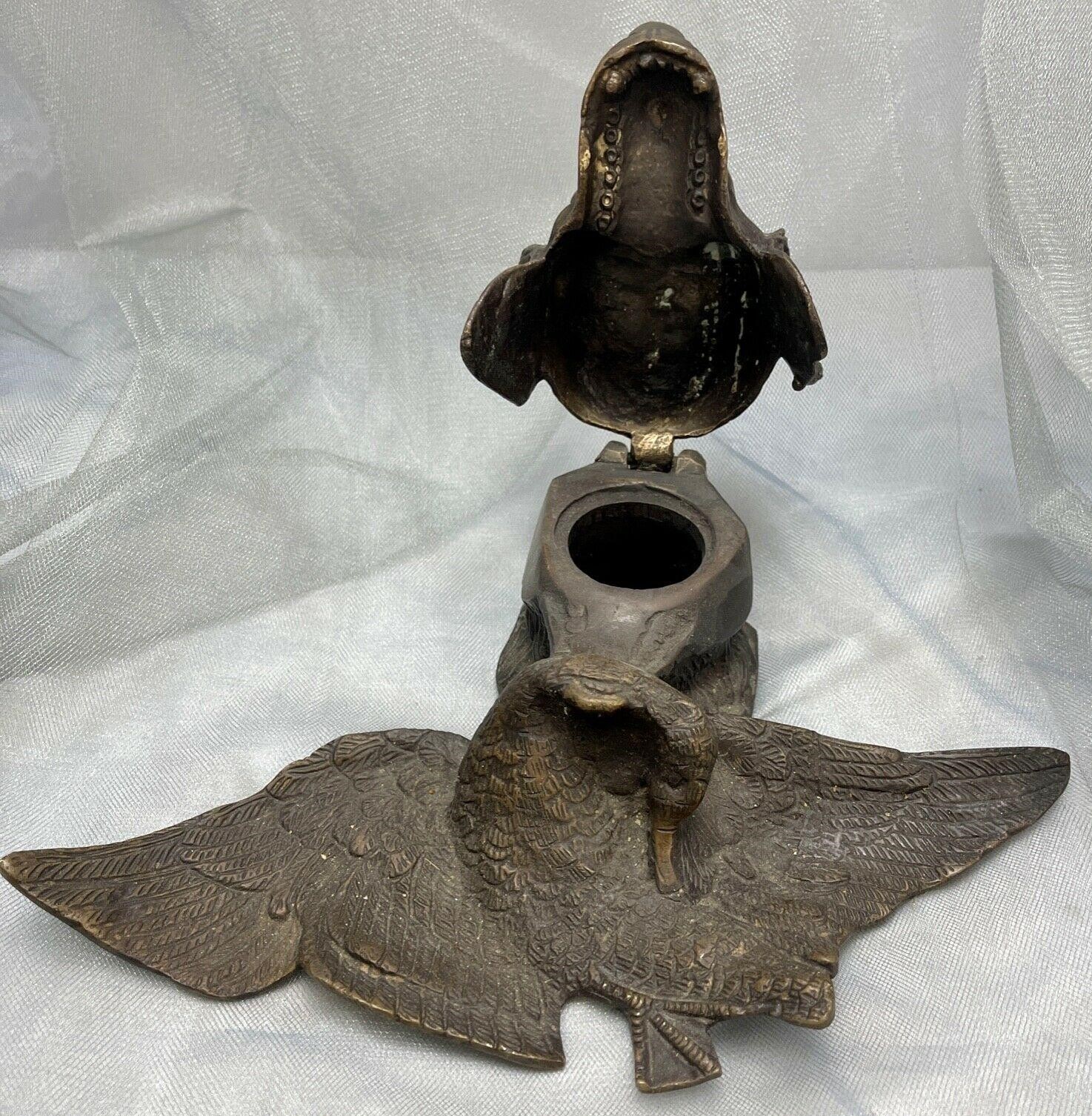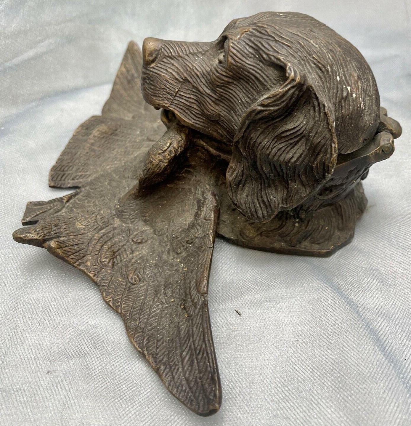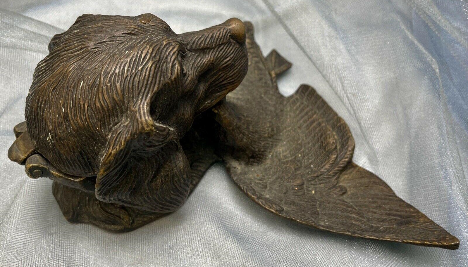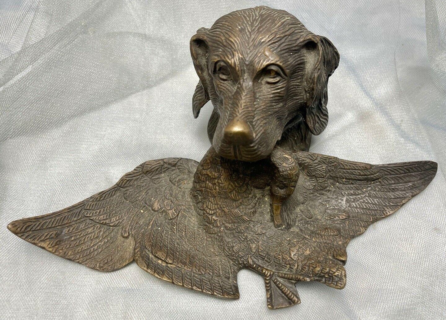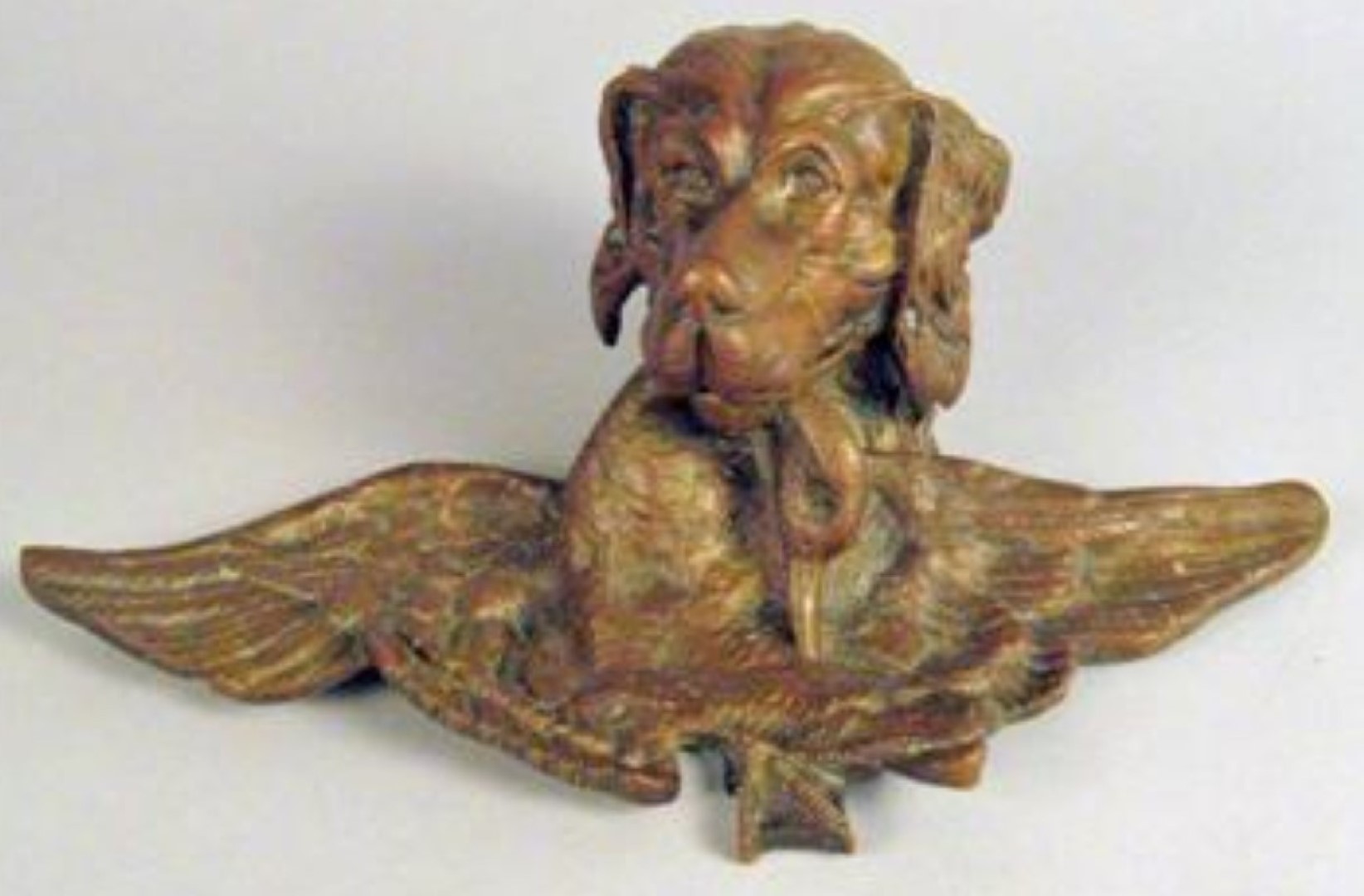 This inkwell in the form of a retriever holding a waterfowl can frequently be seen on the internet. It’s a modern reproduction. I once saw an example online that still had a sticker attached which read “Made in India”.