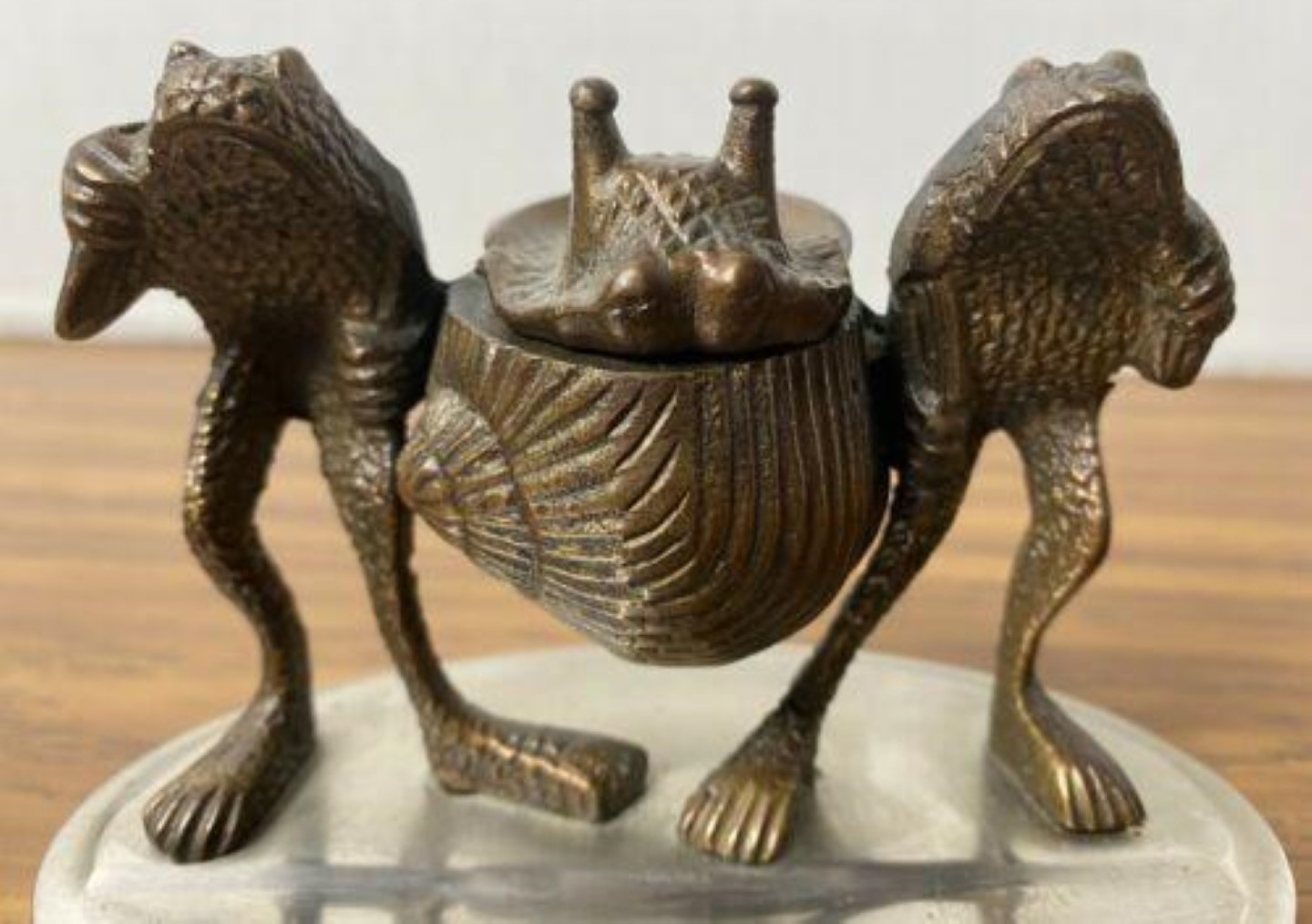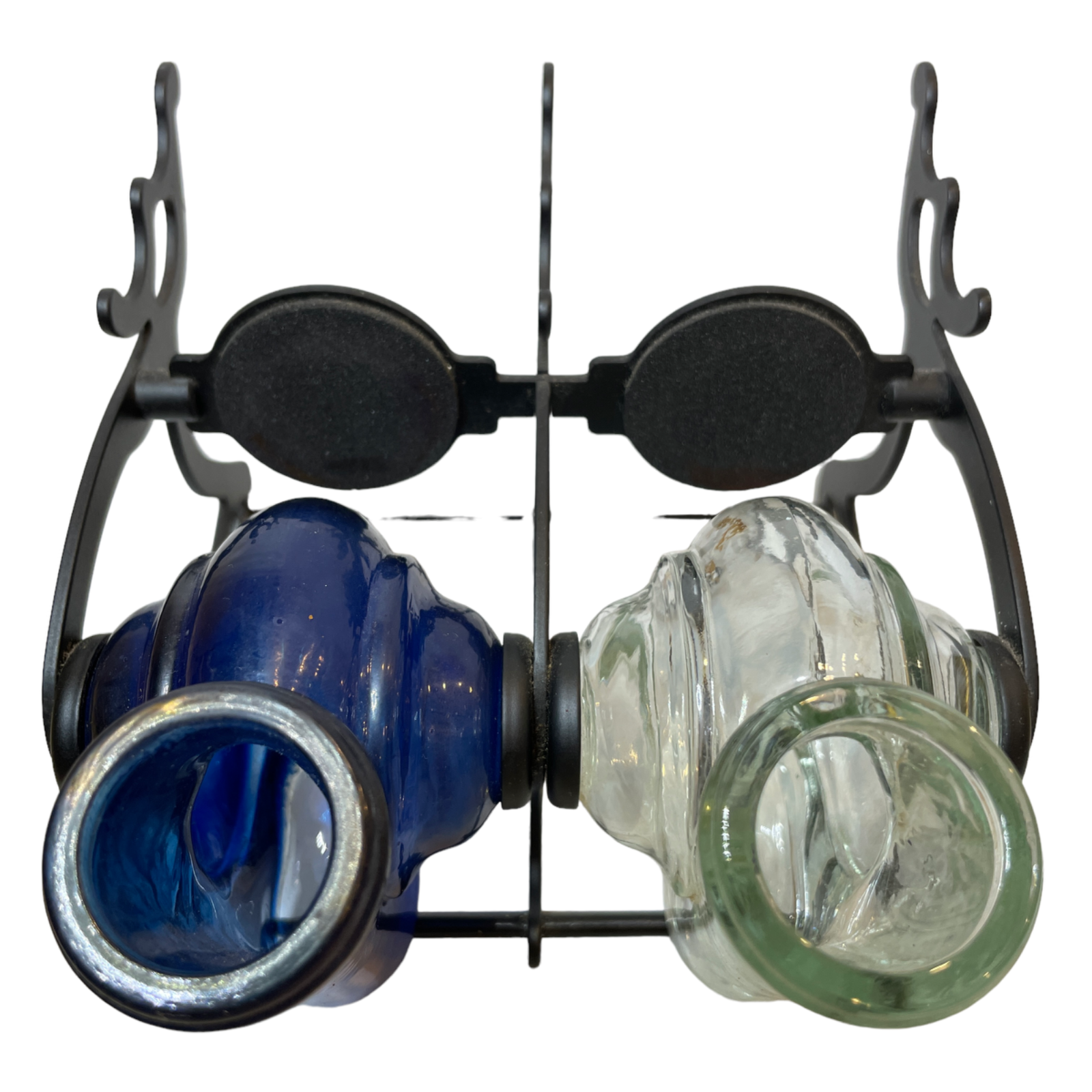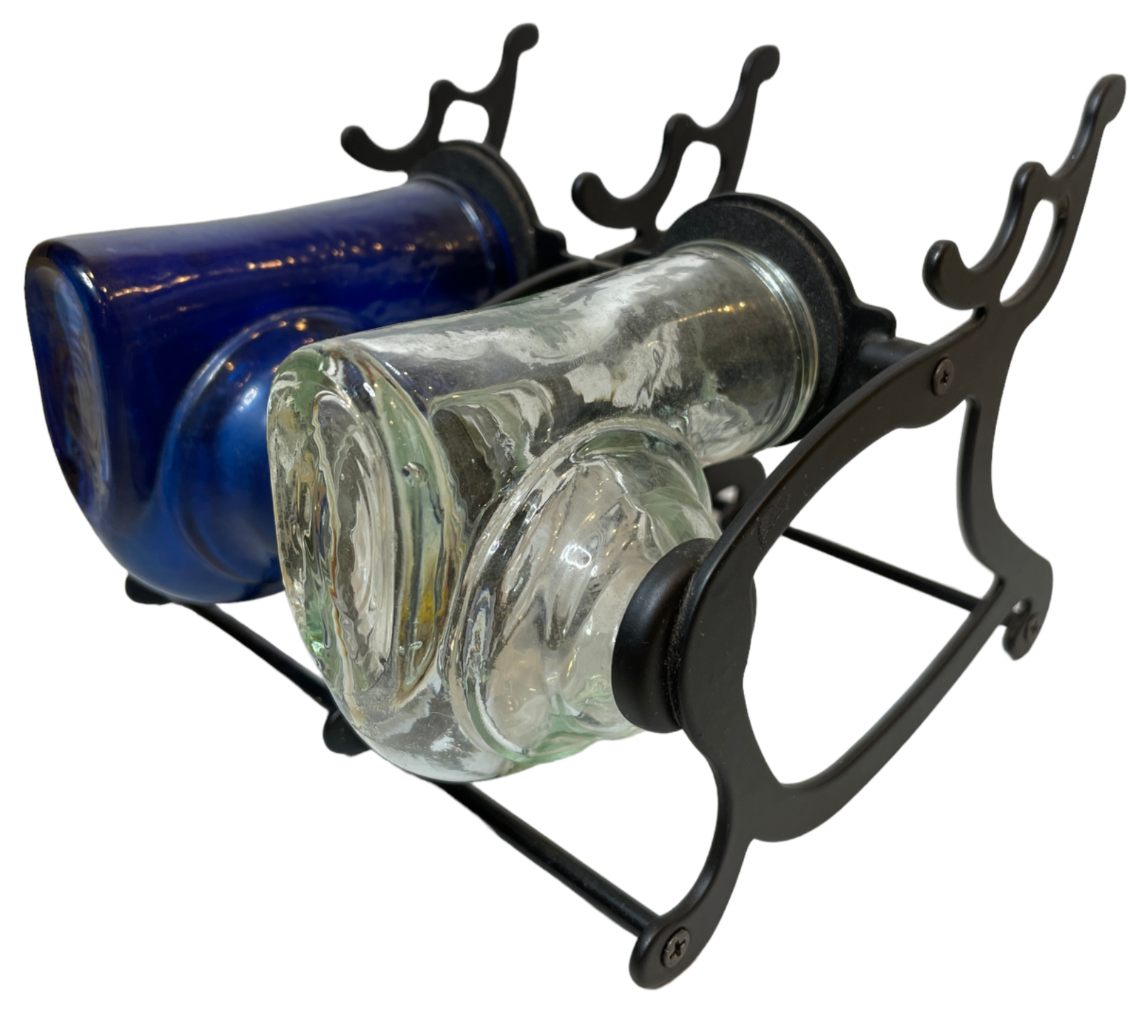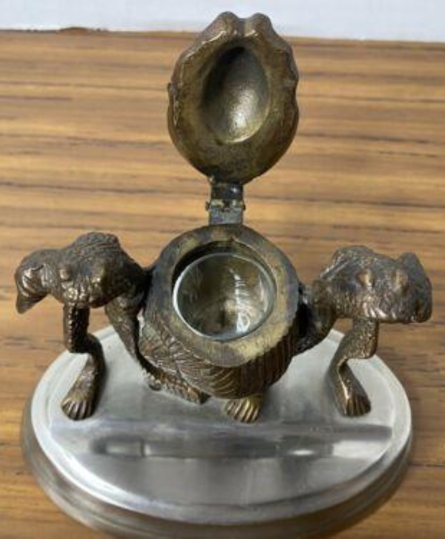 - Double revolving (snail) inkstand which has a long, straight neck to accommodate today’s modern fountain pen