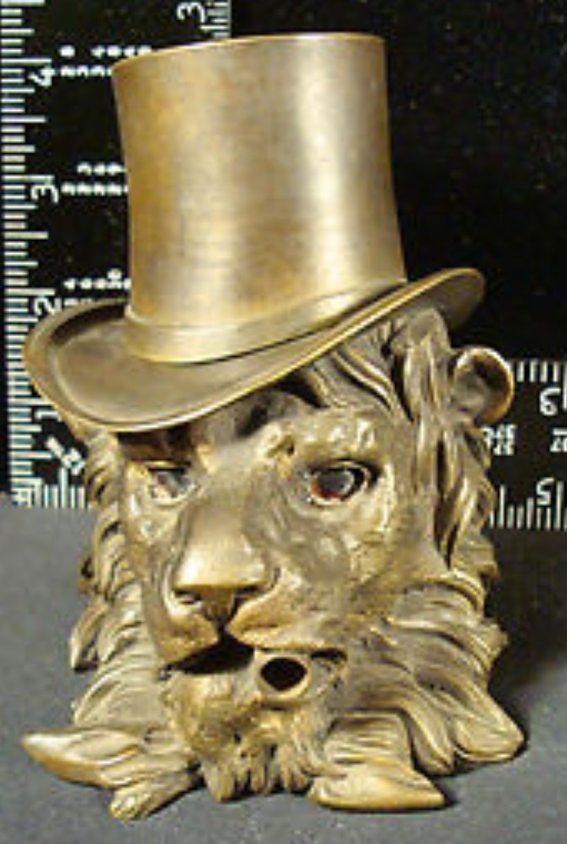 When I first spotted this lion inkwell on eBay in 2008, I was impressed. I researched the piece but couldn’t find it in the reference books. One would think such an unusual inkwell, purportedly dating to the Victorian period, would have shown up somewhere. Subsequently, more of these pieces became available. They were always priced high (beyond what I could consider buying). They sold, some fetching over $1000.