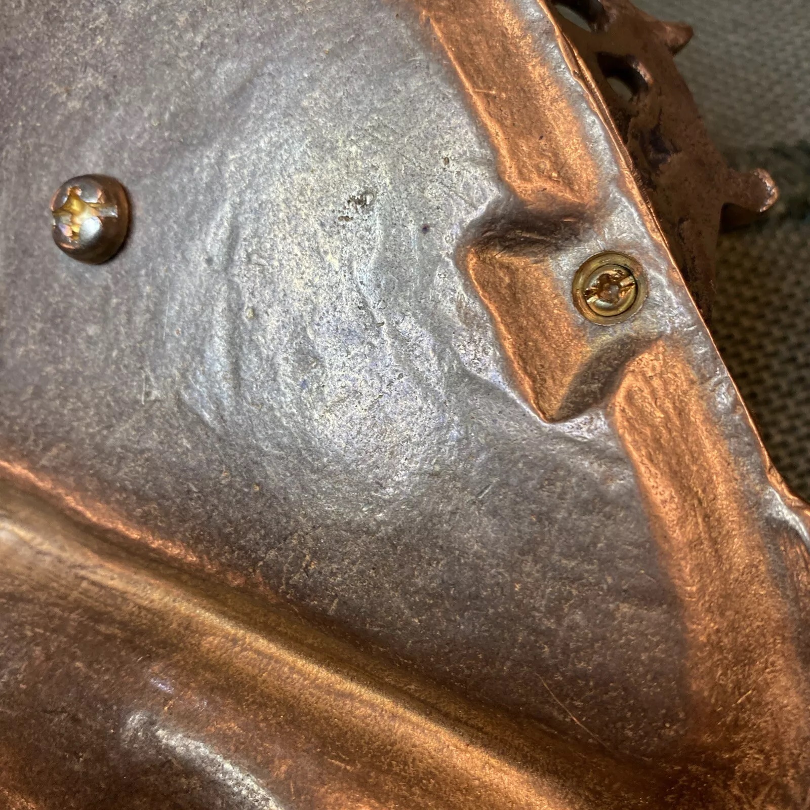 This inkwell was sold on eBay as “antique”, “made of high-quality brass”. If the crude casting, low quality metal, clunky hinge, and brass insert don’t raise suspicions about the inkwell’s age, just look at Phillips head screws.