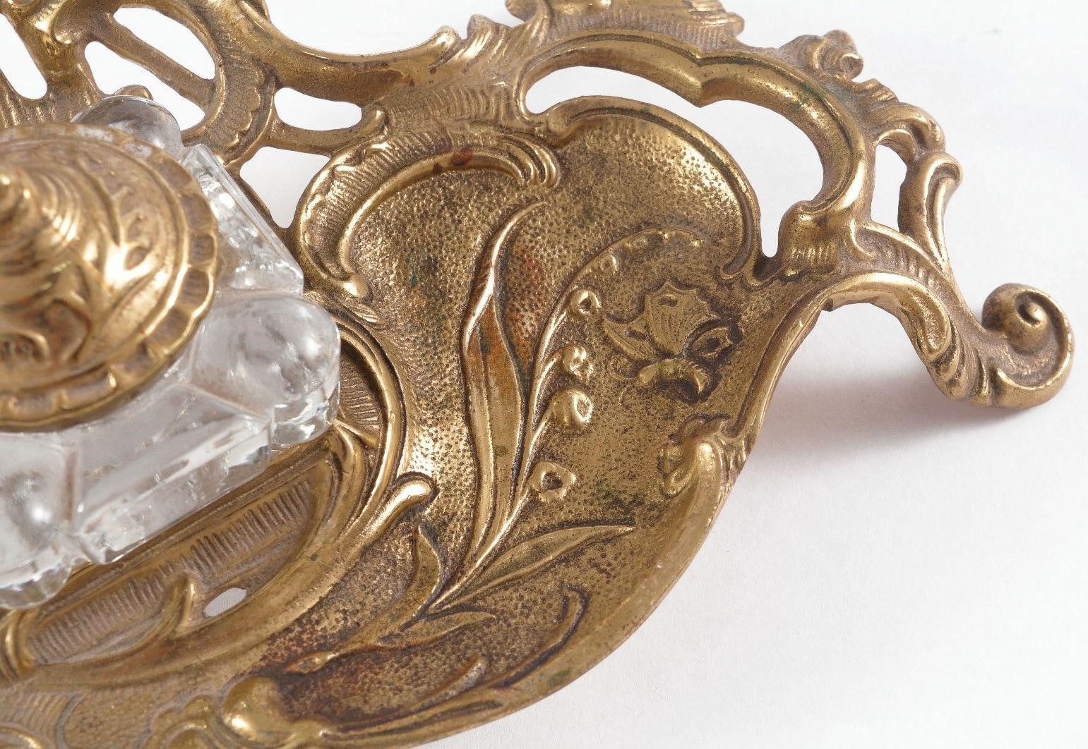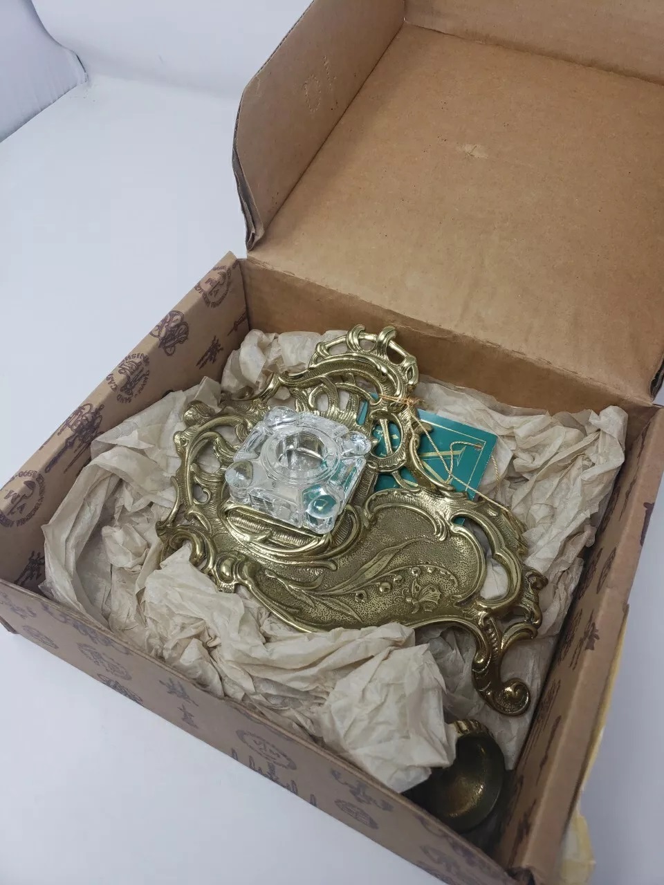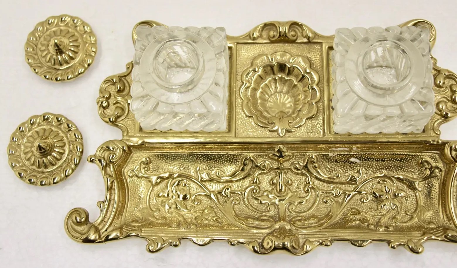 Virginia Metalcrafters made pieces for the Colonial Williamsburg restoration. The company closed in 2005 after being in business over 100 years. Their inkwells and inkstands are marked “VM”, and have been on the market since the 1960’s. They are often found on eBay and other sales / auction sites.