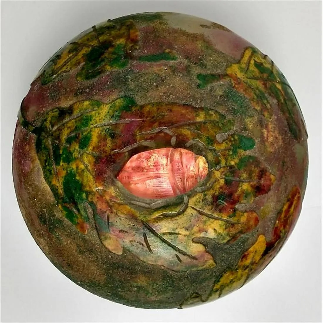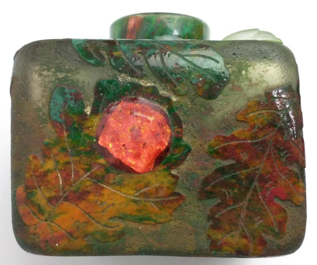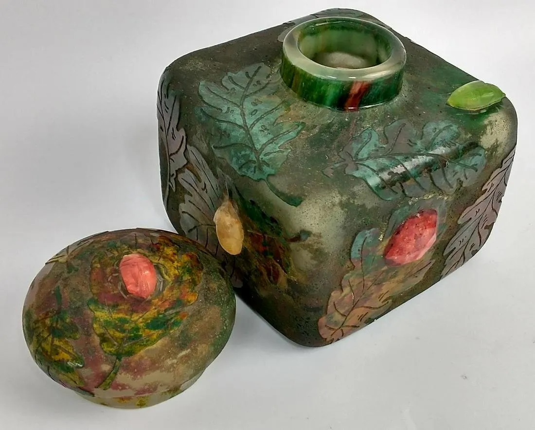 Rare Daum Nancy Cameo Glass Inkwell with 6 Applied Cabochons of Insects, etc.