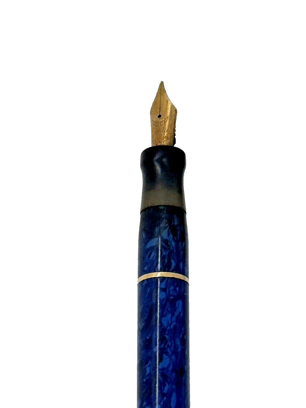 - Celluloid: The blue and black marbled section is made of Celluloid (pyroxylin plastic). This specific pattern is often called “Lapis Lazuli” or simply “Lapis Blue,” a signature color for Conklin in the late 1920s.