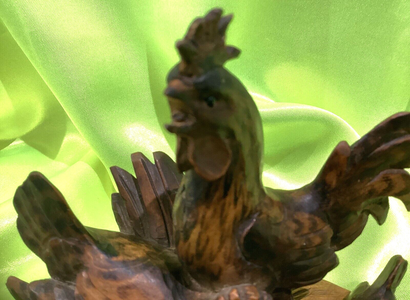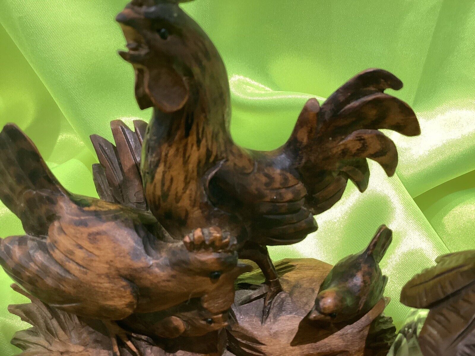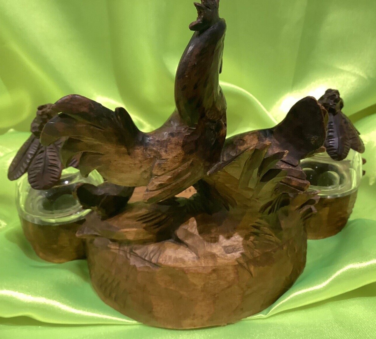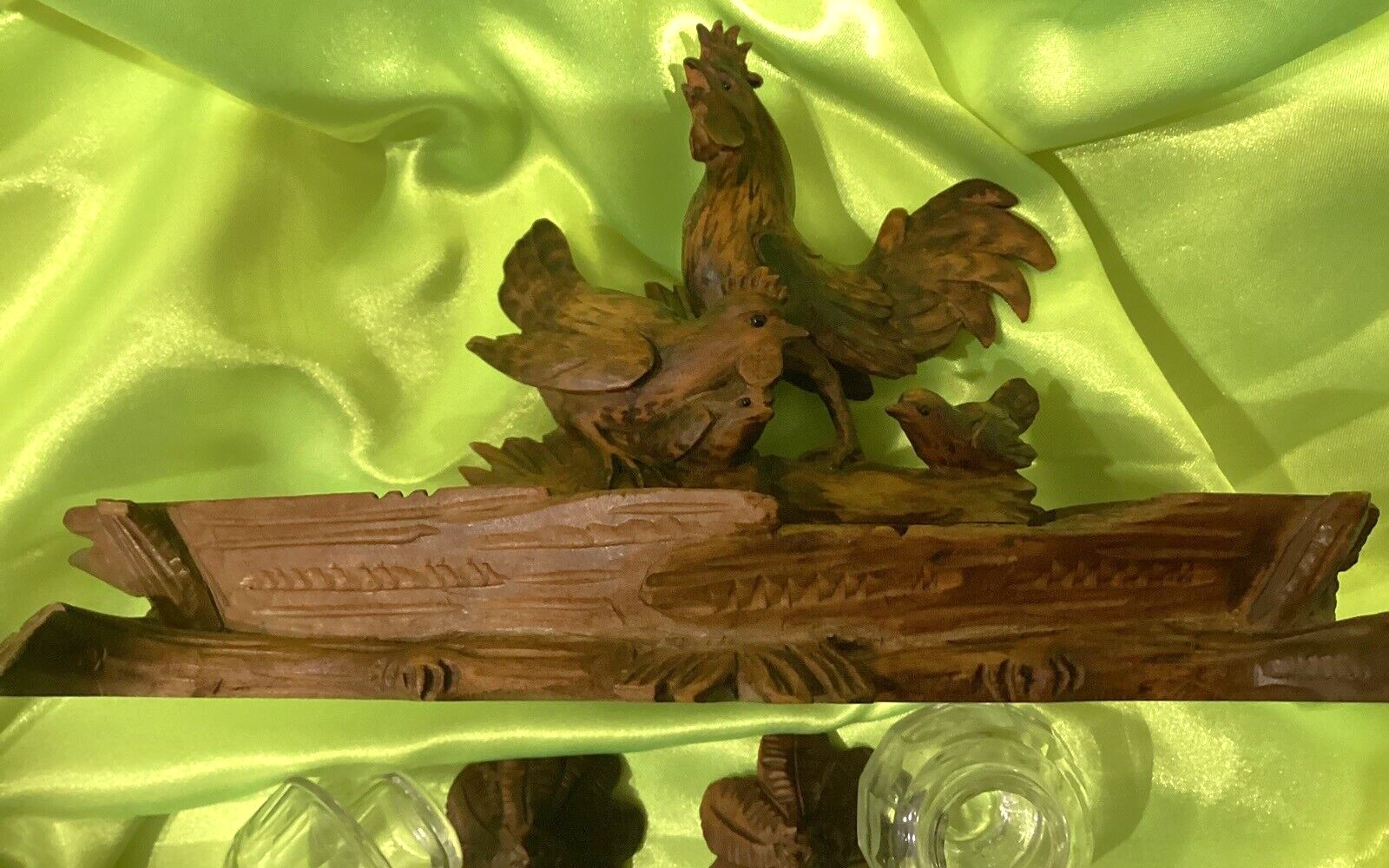 Carved Rooster, Hen, and Chick Inkstand