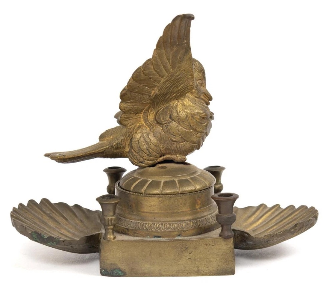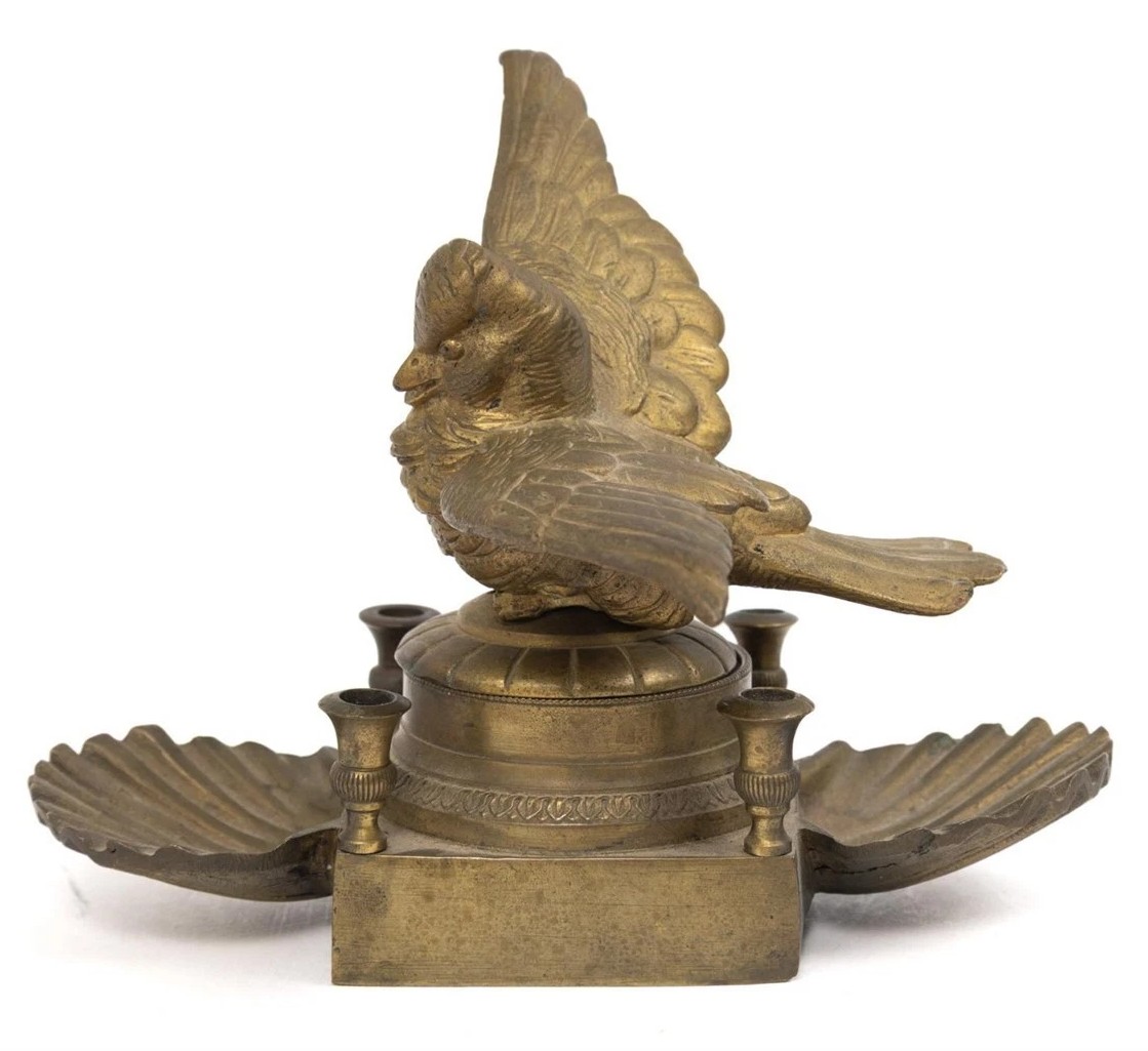 Cast Brass Bird Inkwell