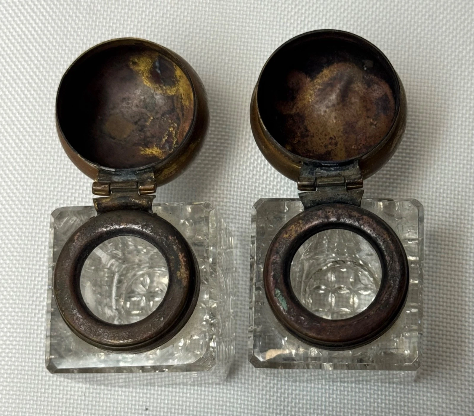 - The Glass: The square, hobnail-patterned glass wells are original to the set. In many of Judd’s pieces, the glass inserts themselves were sometimes marked “Judd” on the bottom, though this is not always the case.
