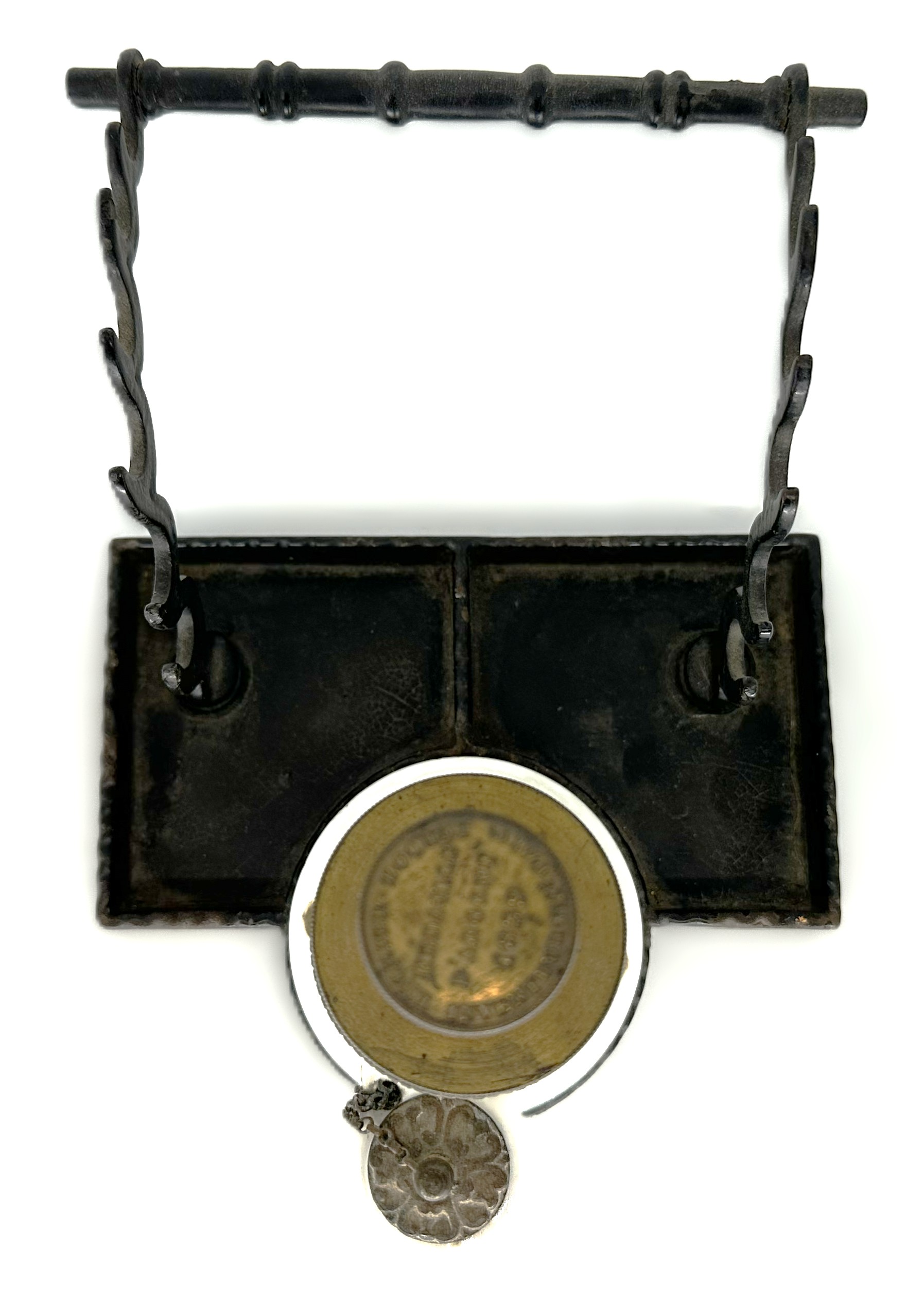 - Base: The tray is divided into two shallow rectangular compartments behind the inkwell for holding nibs, wafers, or seals.