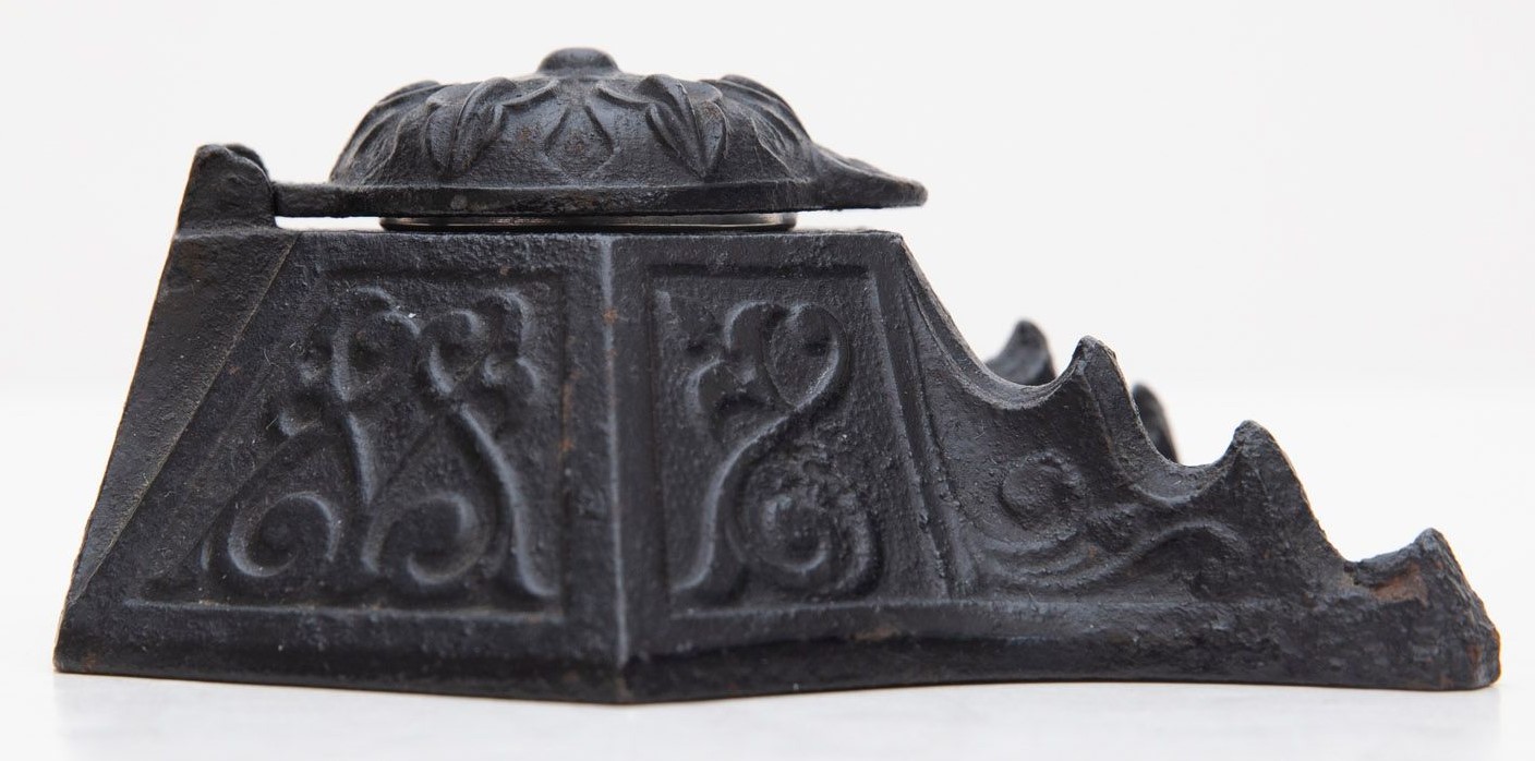 Cast Iron Inkwell with 3-Tiered Pen Holder
