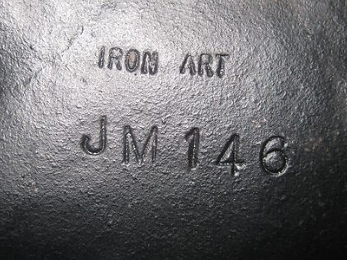 “Iron Art” refers to a line of cast iron products that were popular in the mid-20th century. These items were often decorative and functional, ranging from inkwells to doorstops and other household items. The Iron Art Company was based in Philipsburg, New Jersey. The company gained popularity for its detailed and durable cast iron pieces, which were often inspired by Victorian designs and other historical motifs.