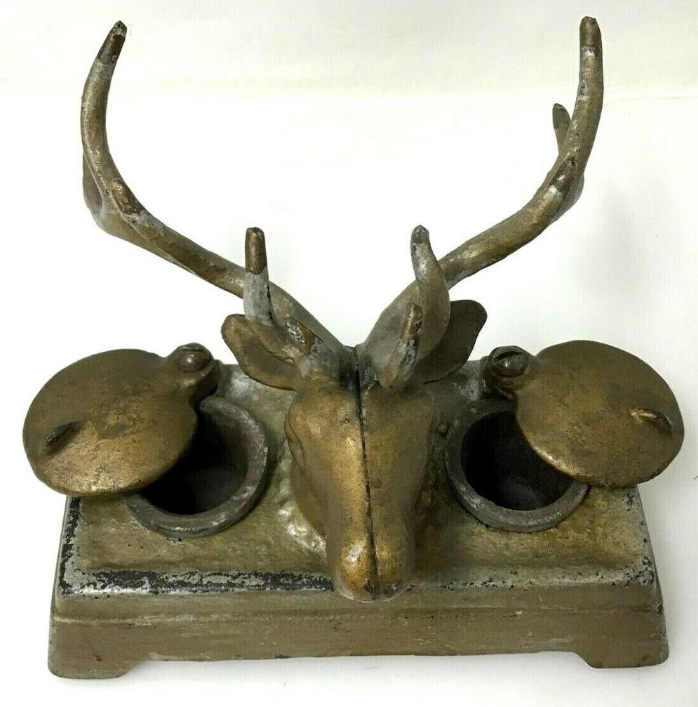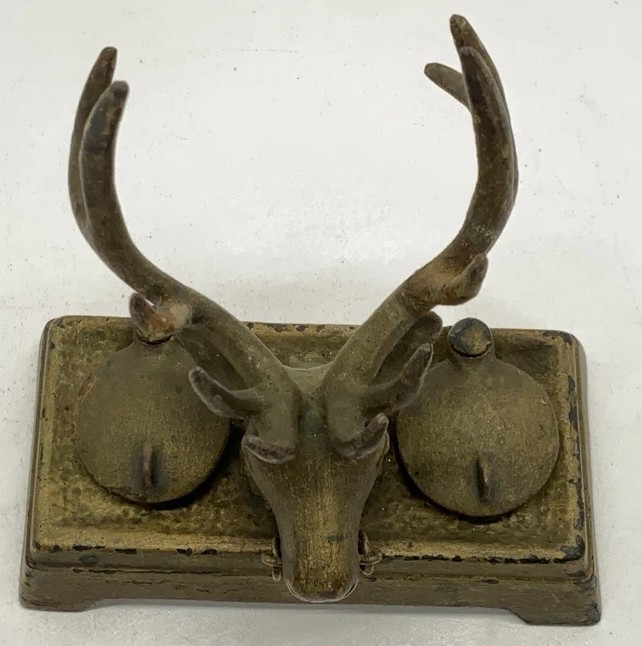 Cast Iron Stag’s Head Double Inkstand