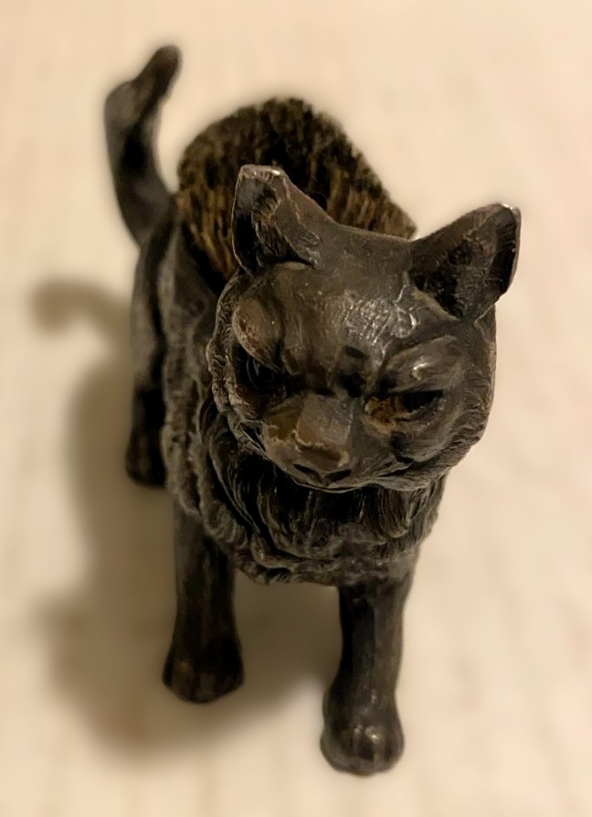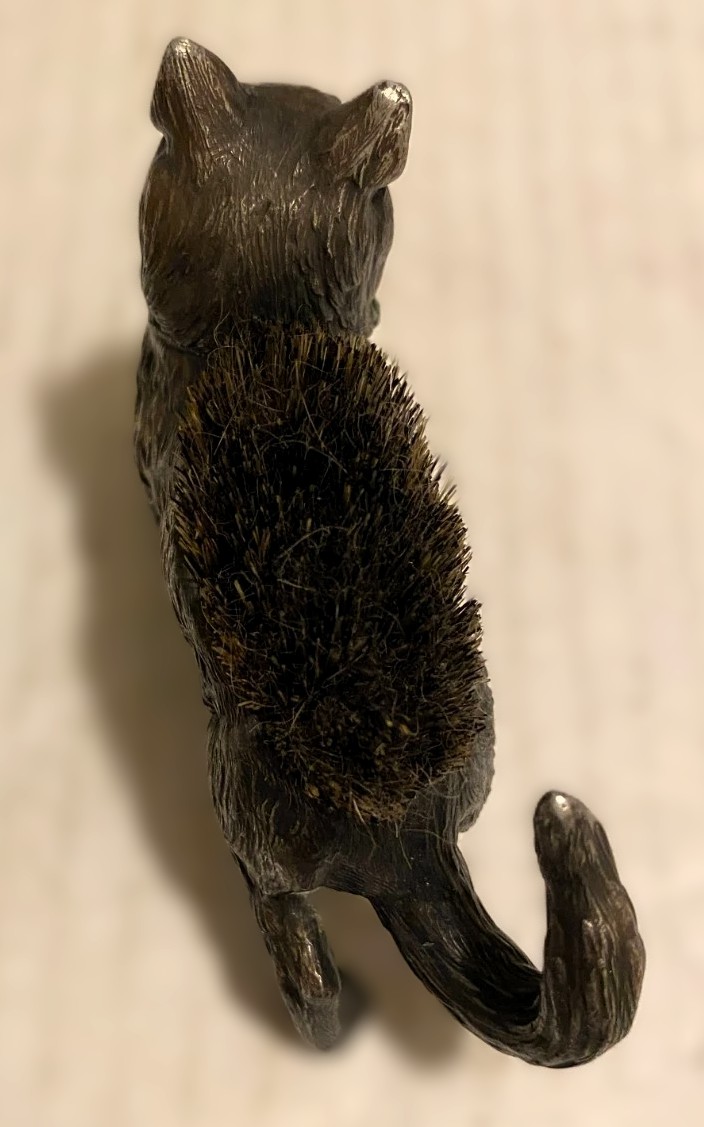 - Nib Cleaning: It served as a figural pen wipe. A writer would periodically dip their steel nib into the stiff bristles on the cat’s back to remove dried ink and paper fibers.