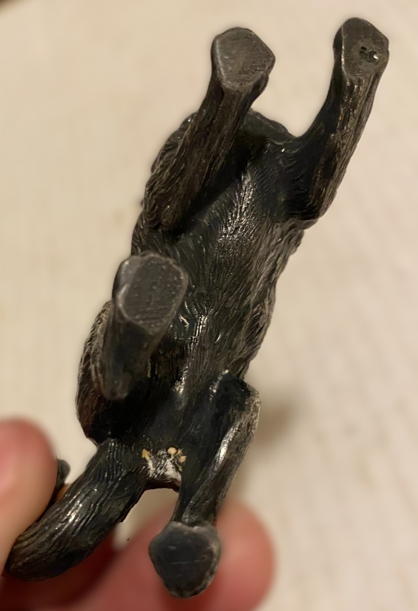 - Dating: Based on this hallmark and the naturalistic, playful modeling of the cat, the piece was likely manufactured in Vienna, Austria, between 1890 and 1910.