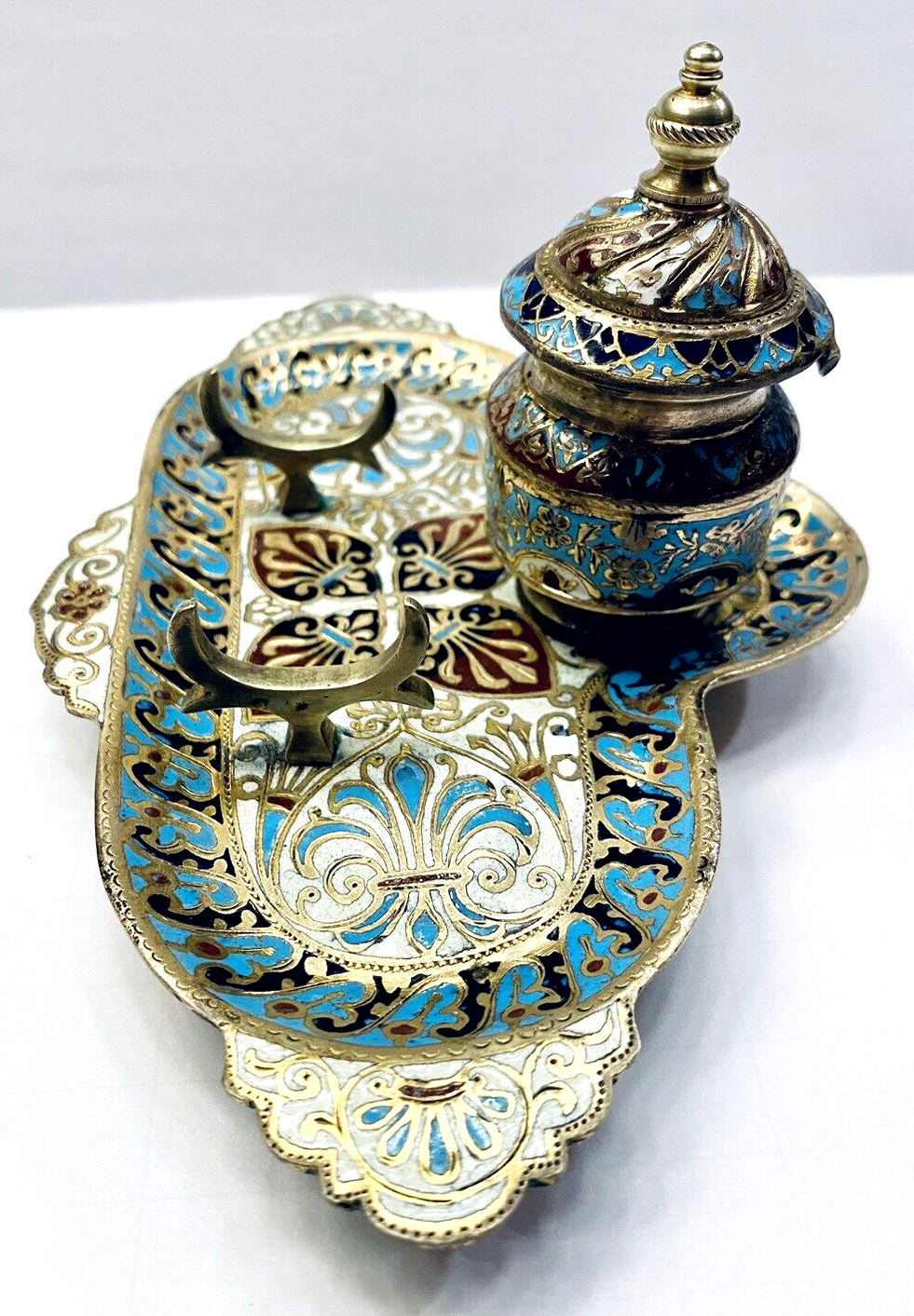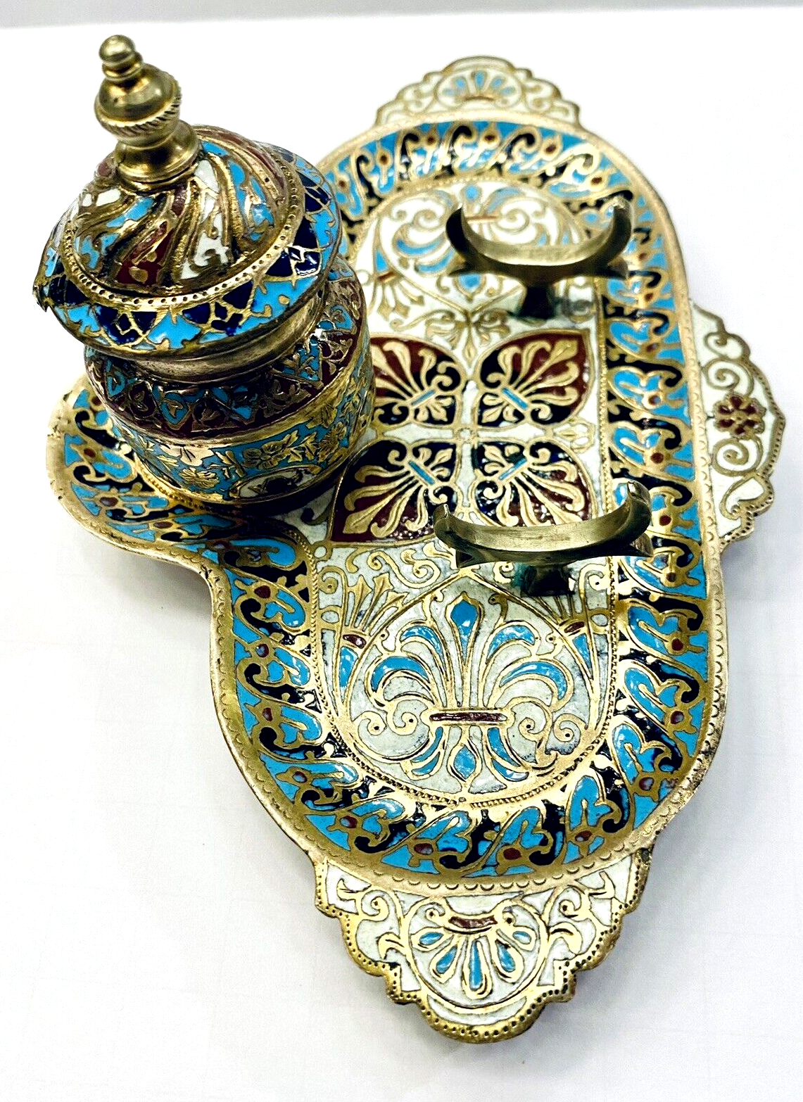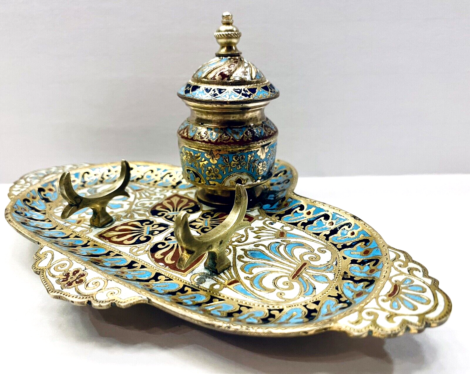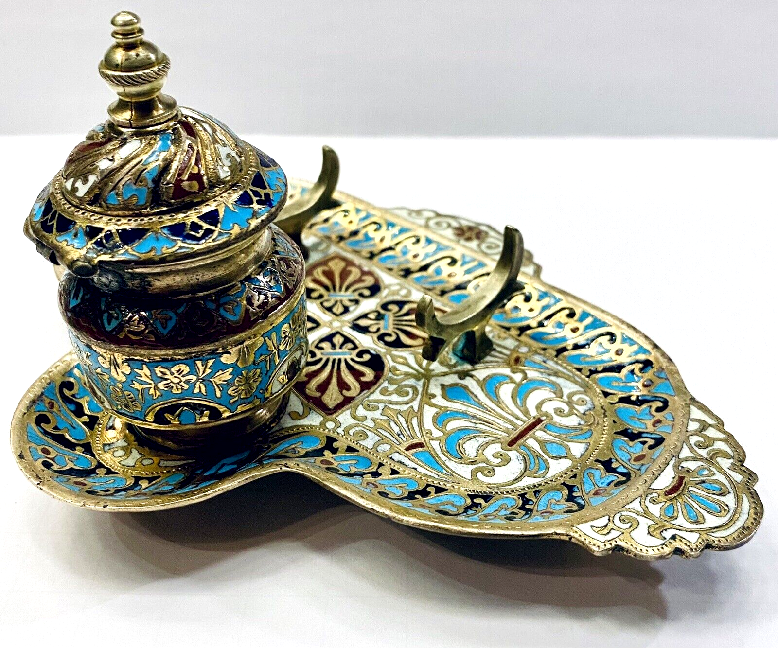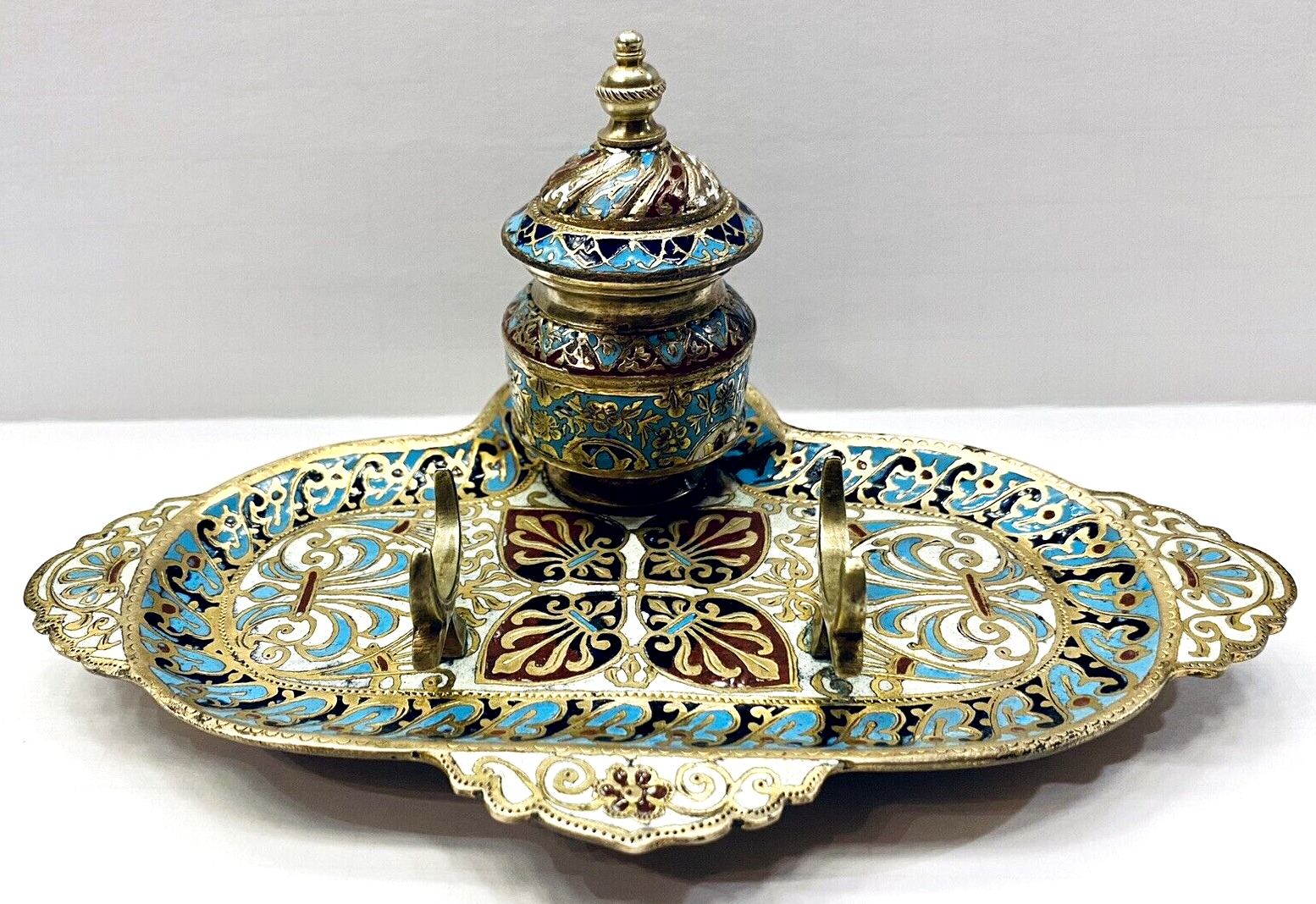 Champleve Enamel & Bronze Doré Inkwell