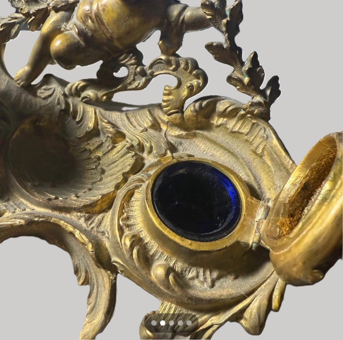 - When it was made: Based on the neoclassical “Cherub” motif and the use of cobalt blue glass, this piece dates to the Late Victorian or Napoleon III period (circa 1870–1890).