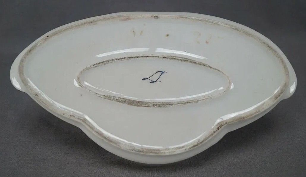 The mark on the underside is a “Crossed L” mark with an additional symbol and painted letters or numbers. While it’s not a genuine Sèvres mark, it is a direct copy of the famous Sèvres porcelain manufactory mark from France. The practice of using the “Crossed L” mark was widespread among other French and European porcelain makers, who sought to capitalize on the prestige of Sèvres.