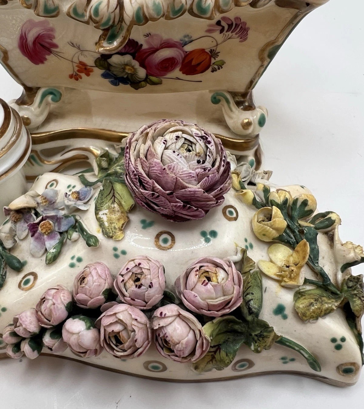 - Assembly: Each petal was applied one by one to the leather-hard body of the inkstand before its first firing. A single master flower maker could often produce a complete rose in about 30 seconds.