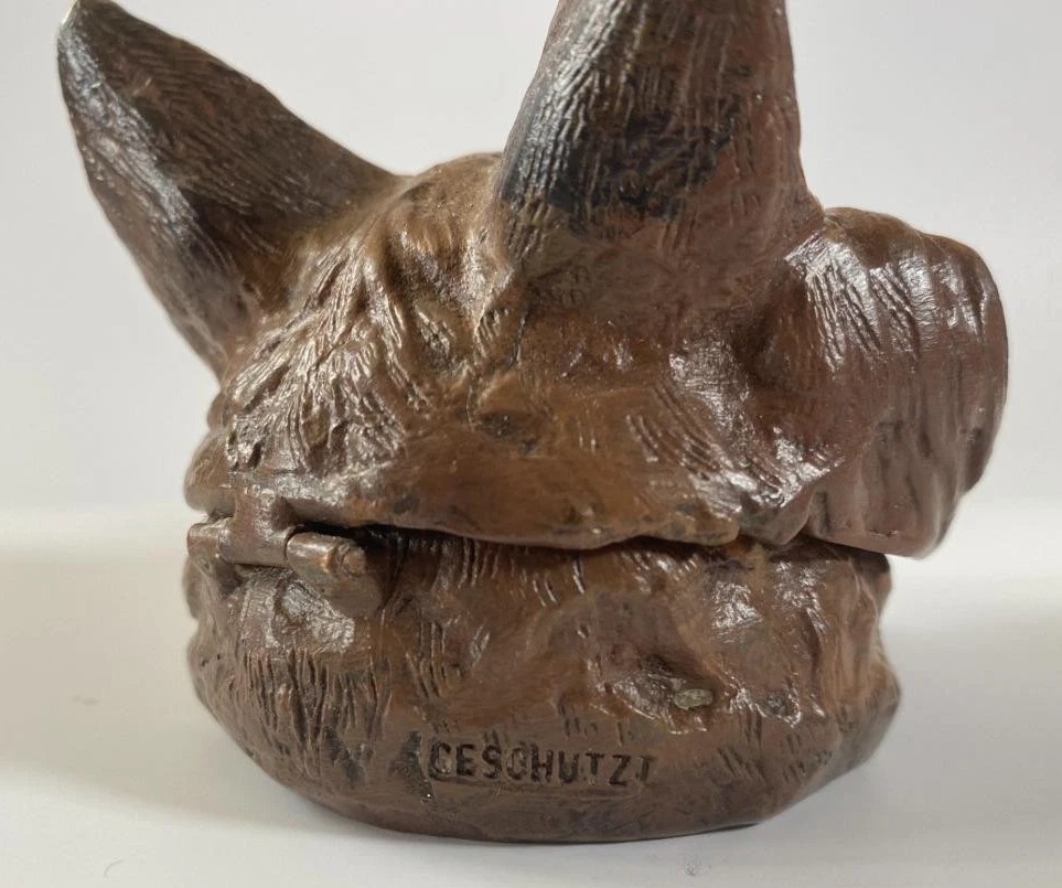 This fox inkwell appears to be a modern production, likely made to replicate the aesthetic of late 19th or early 20th-century Austrian or German cold-painted bronzes.