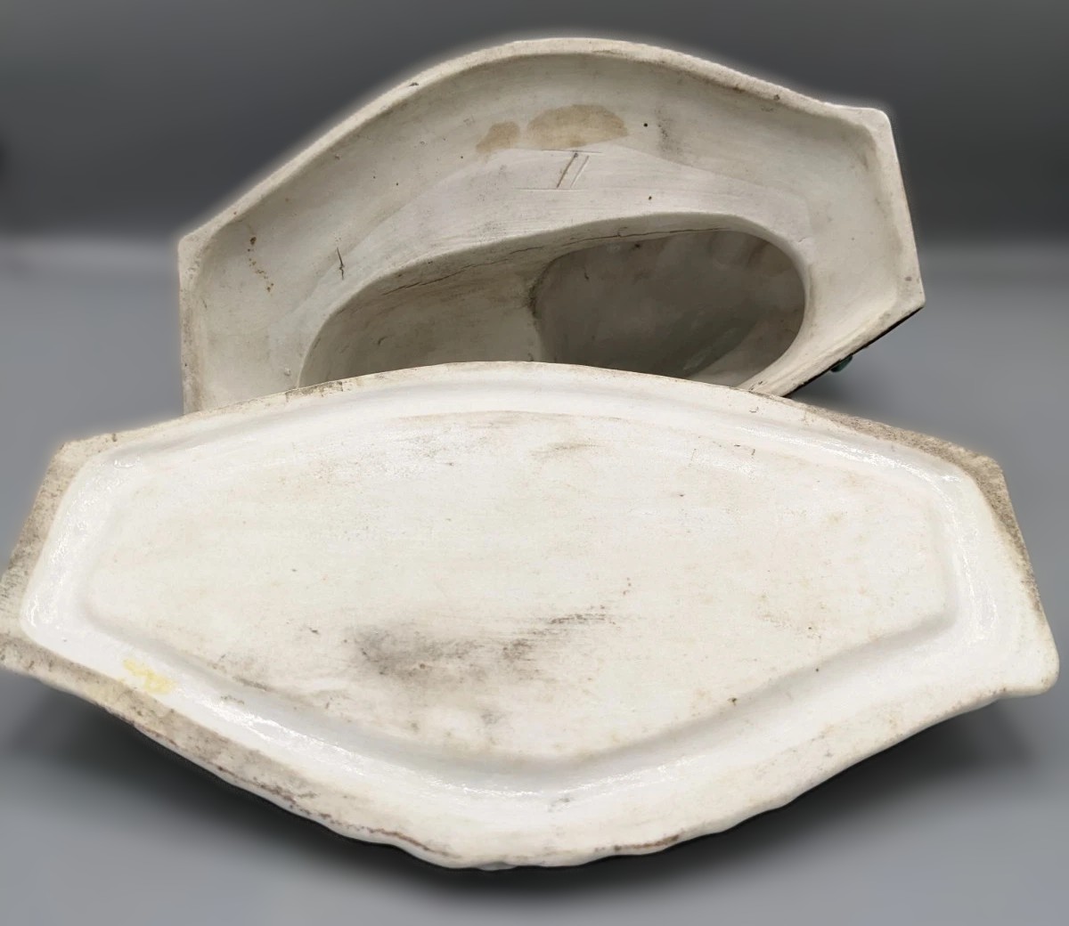 • The Marking: The incised Roman Numeral II on the underside is a factory matching mark. Because these pieces were hand-fitted, workers used these numbers to ensure the lid and the base remained as a coordinated pair through the firing and glazing process.