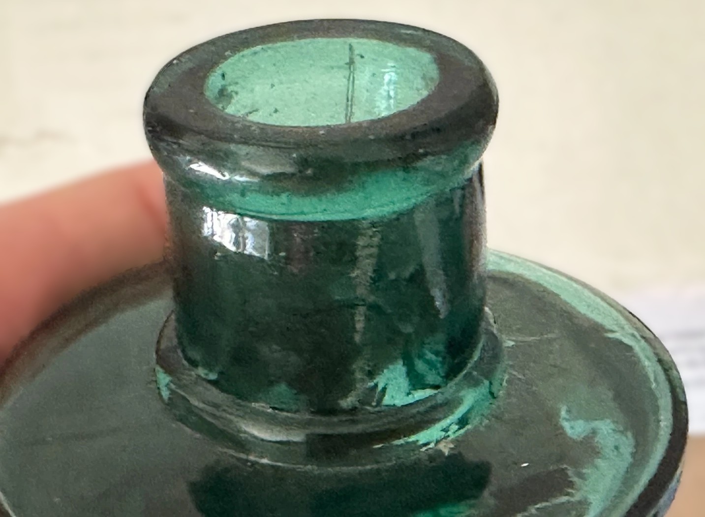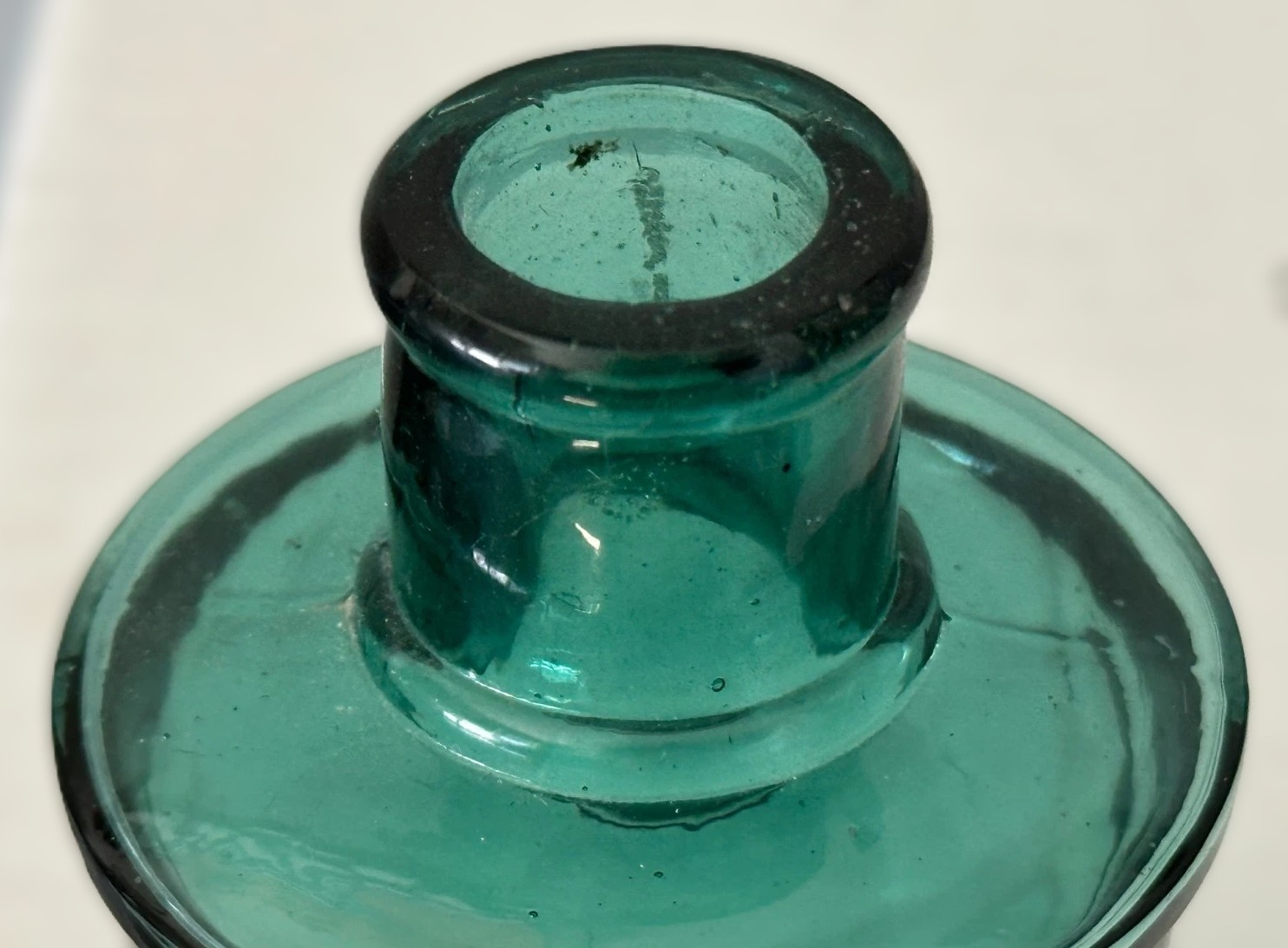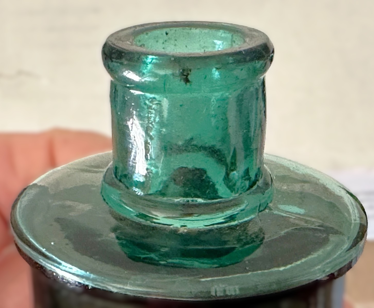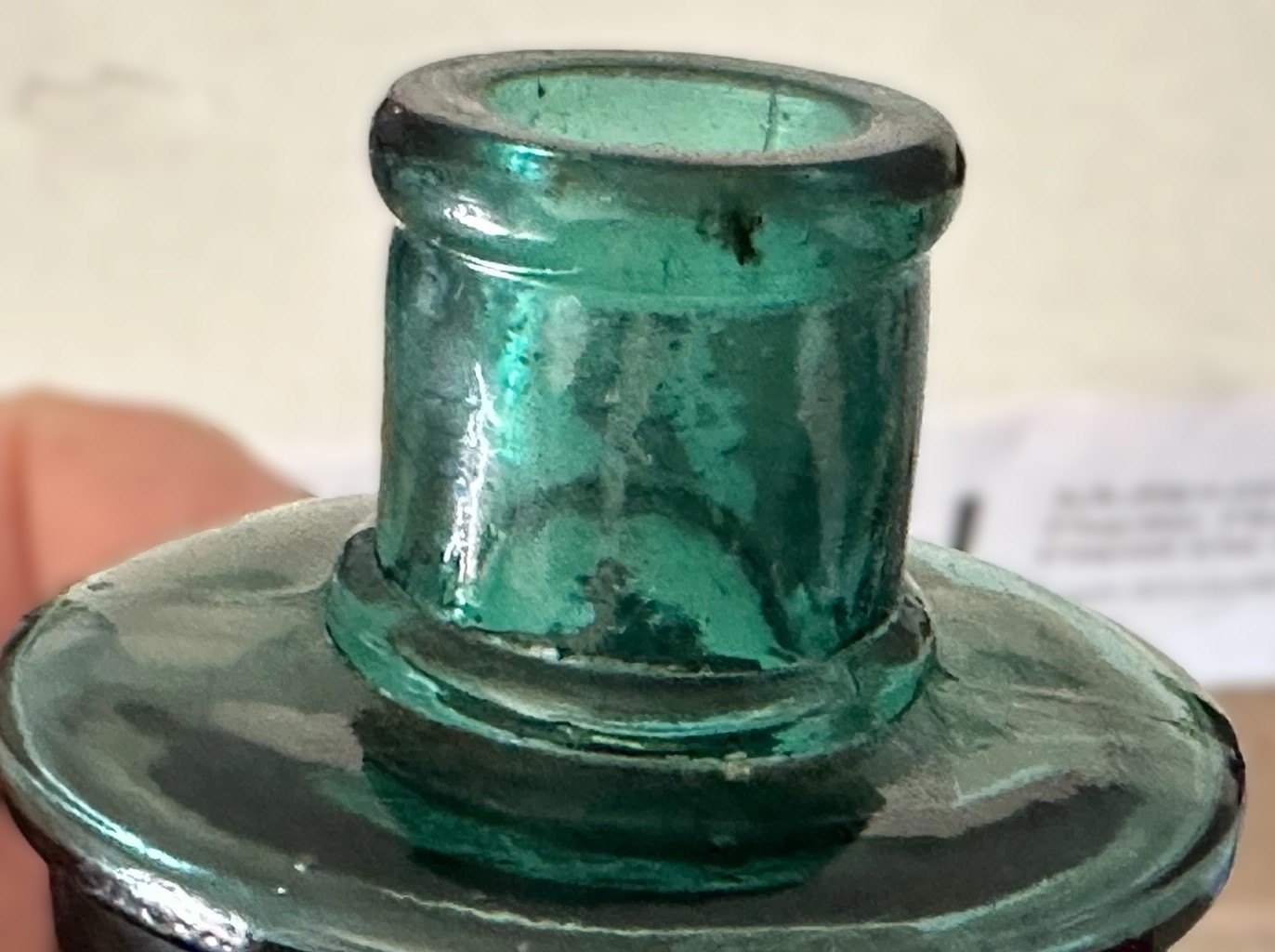 • Applied/Tooled Lip: The top collar (lip) was finished by hand with a tool after the bottle was removed from the blowpipe. You can see the concentric tooling marks on the neck.