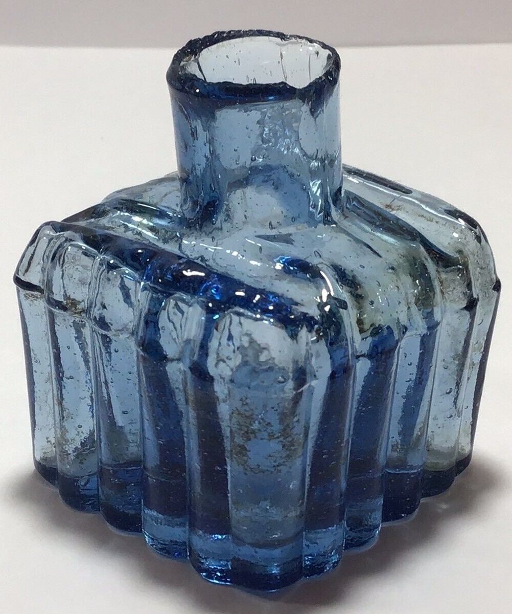 Copper Blue Ribbed Ink Bottle