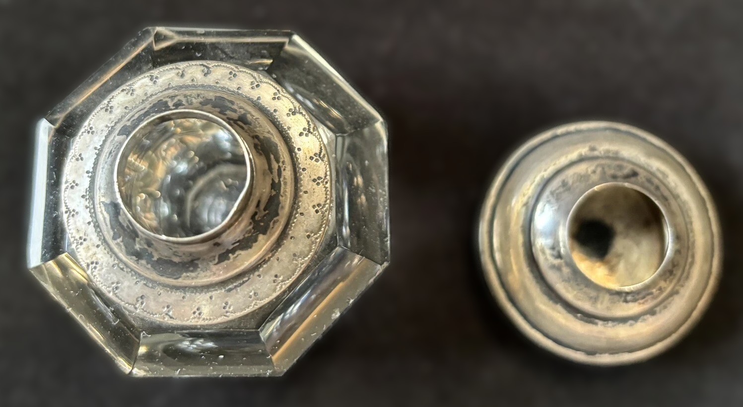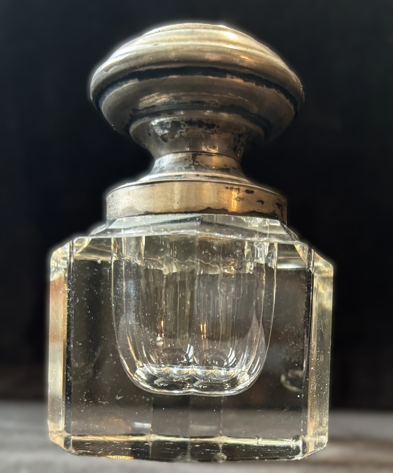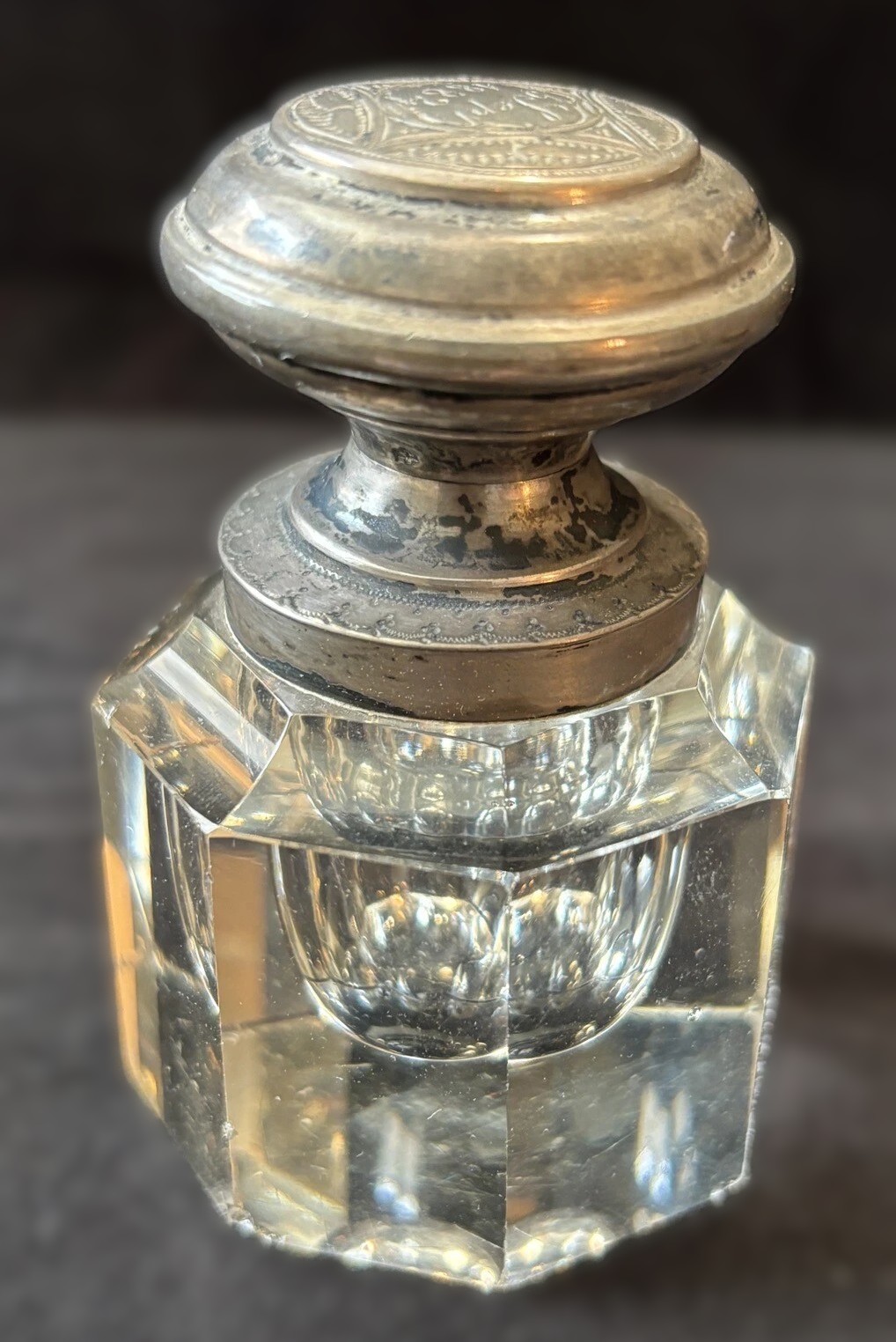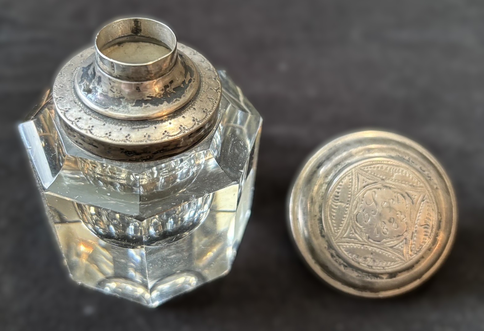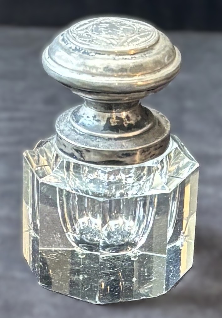 Crystal Inkwell with Silver Lid Engraved 1882