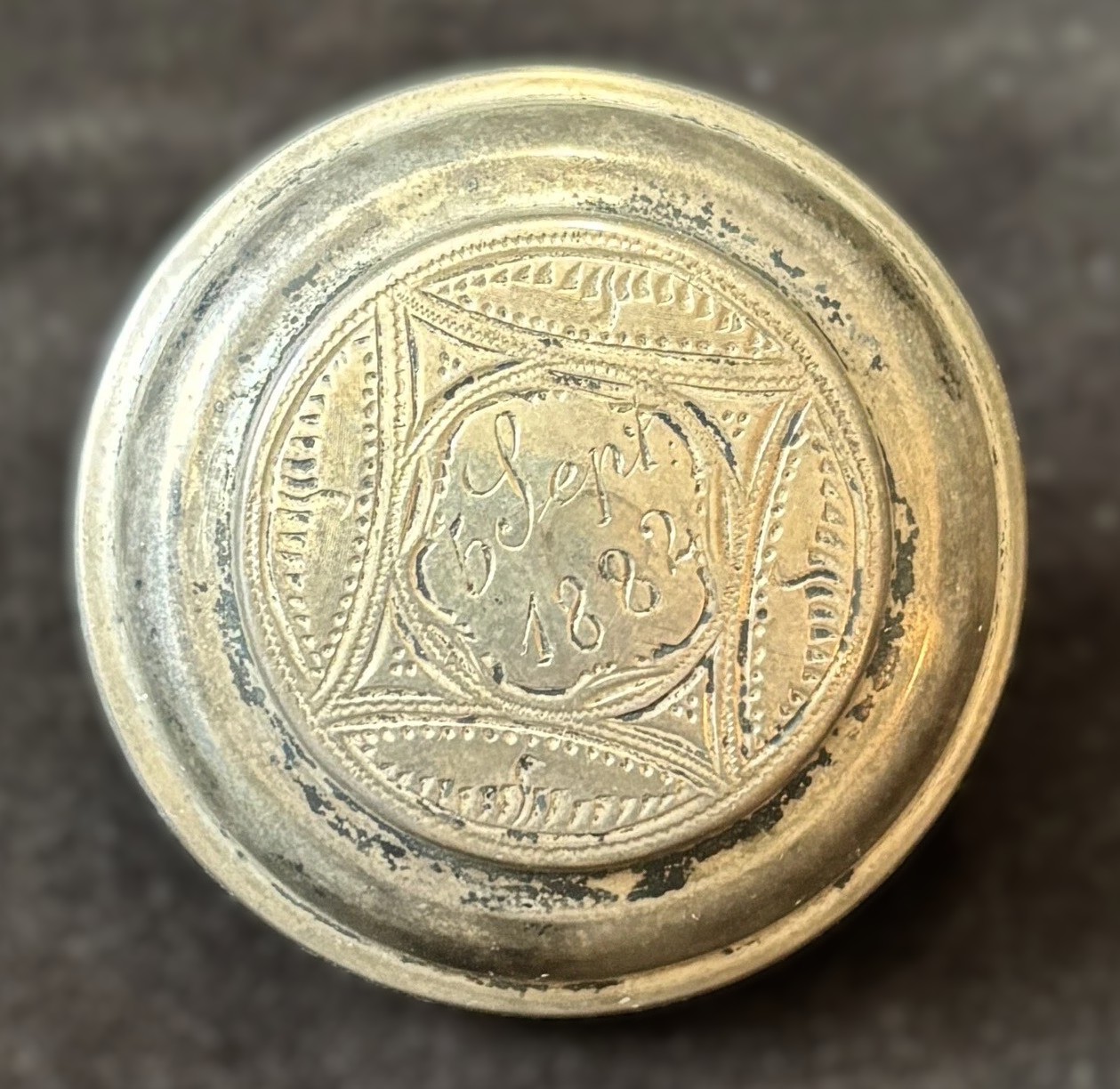 - The Engraving: The inscription “5 Sept 1882” is a personalized commemorative mark. This suggests the inkwell may have been a high-status gift for an anniversary, a promotion, or a birthday.