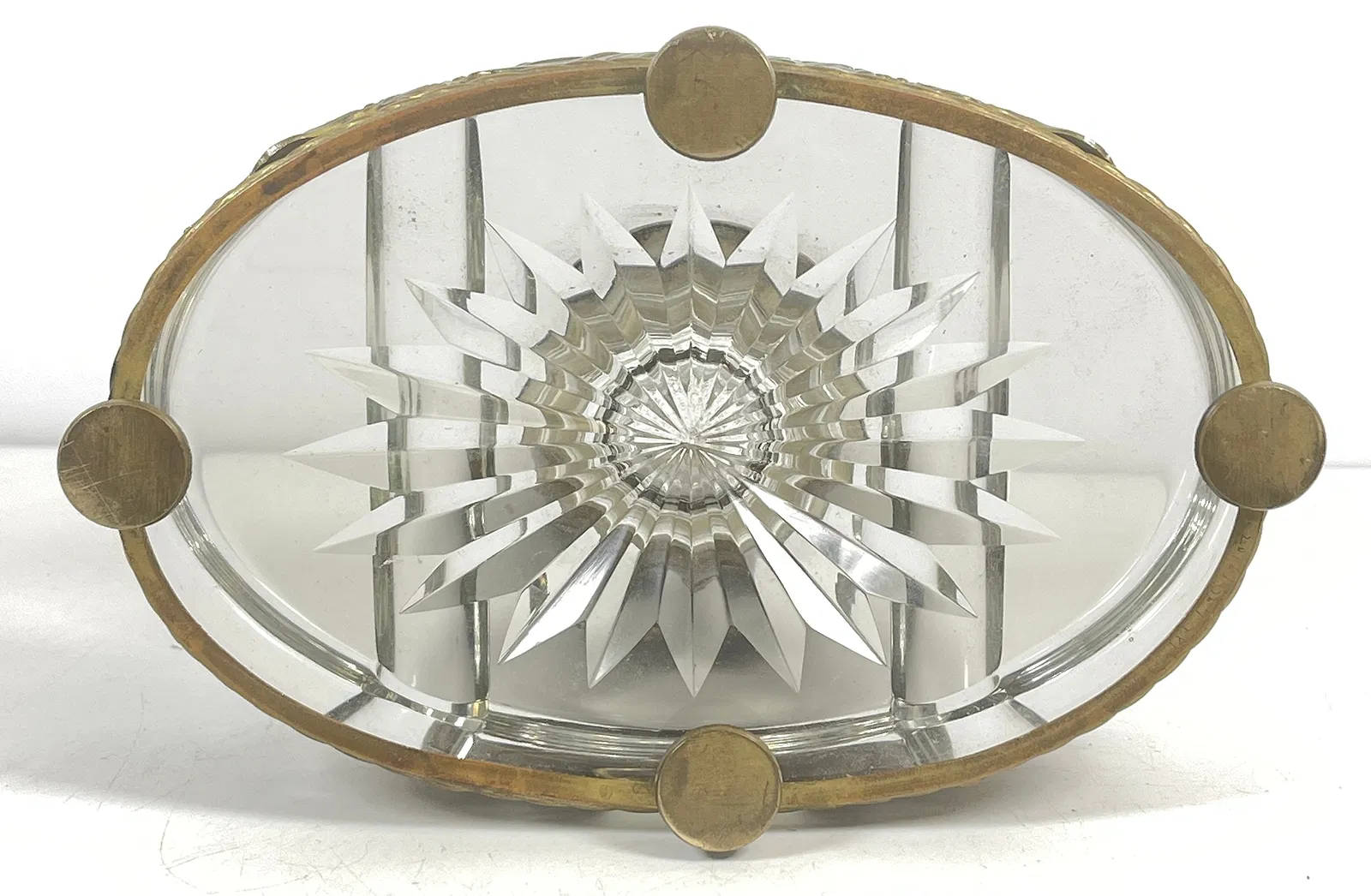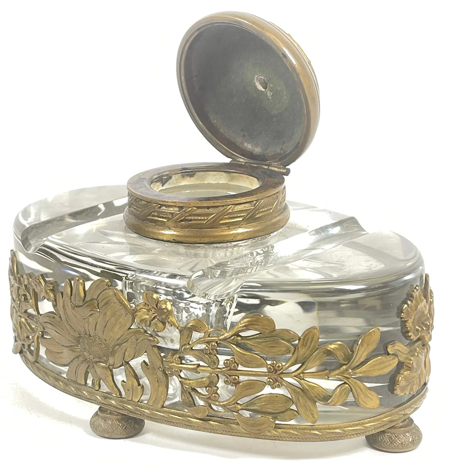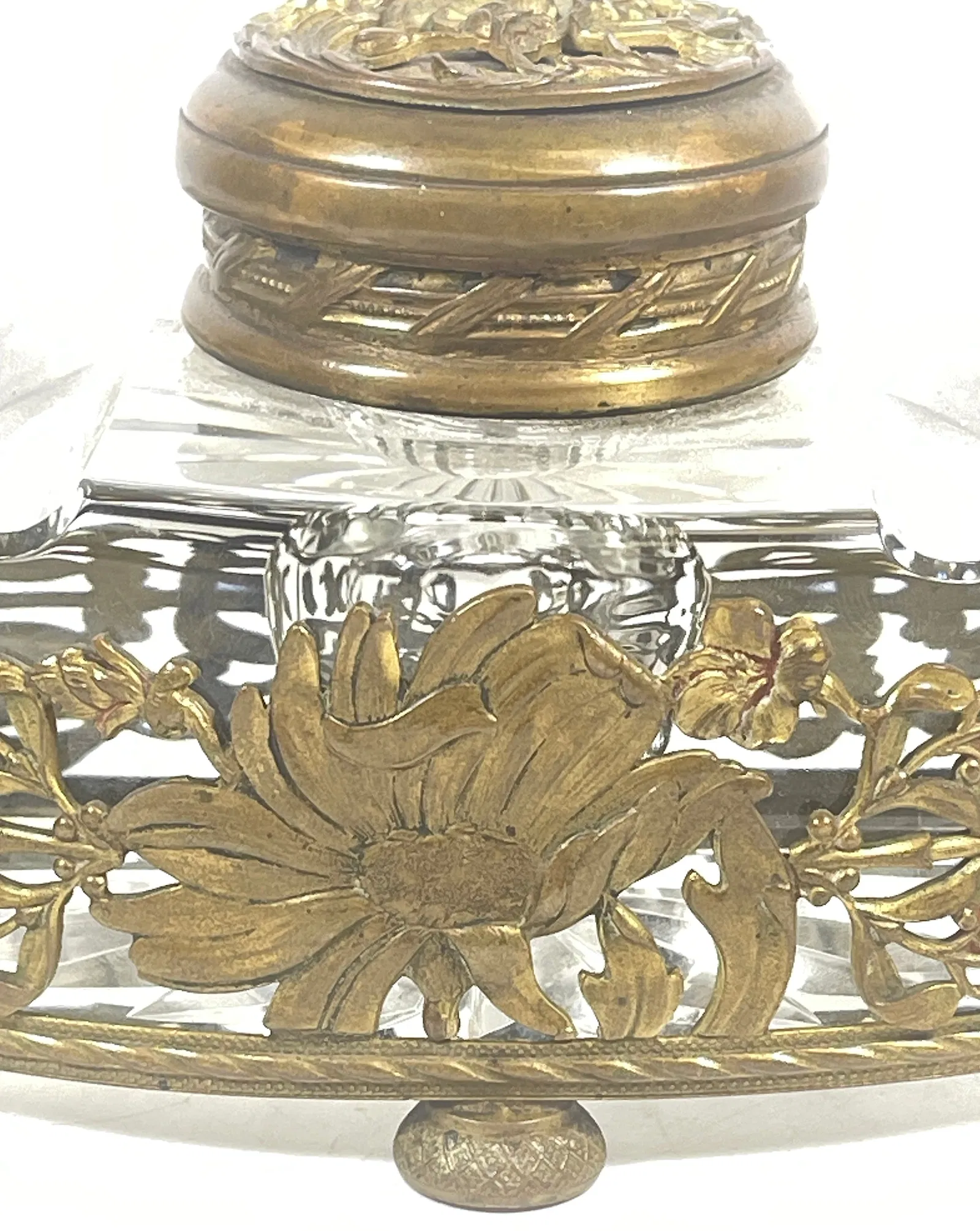 Cut Crystal Inkwell with Bronze Filigree