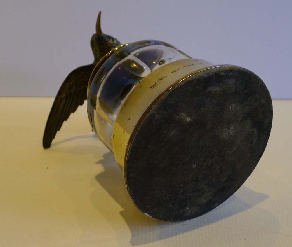 Cut Glass Inkwell with Bronze Bird