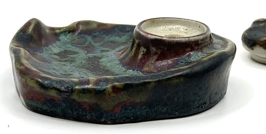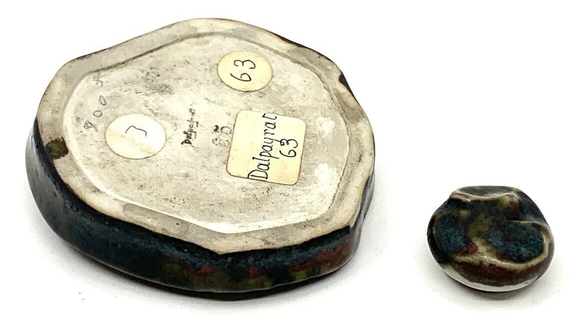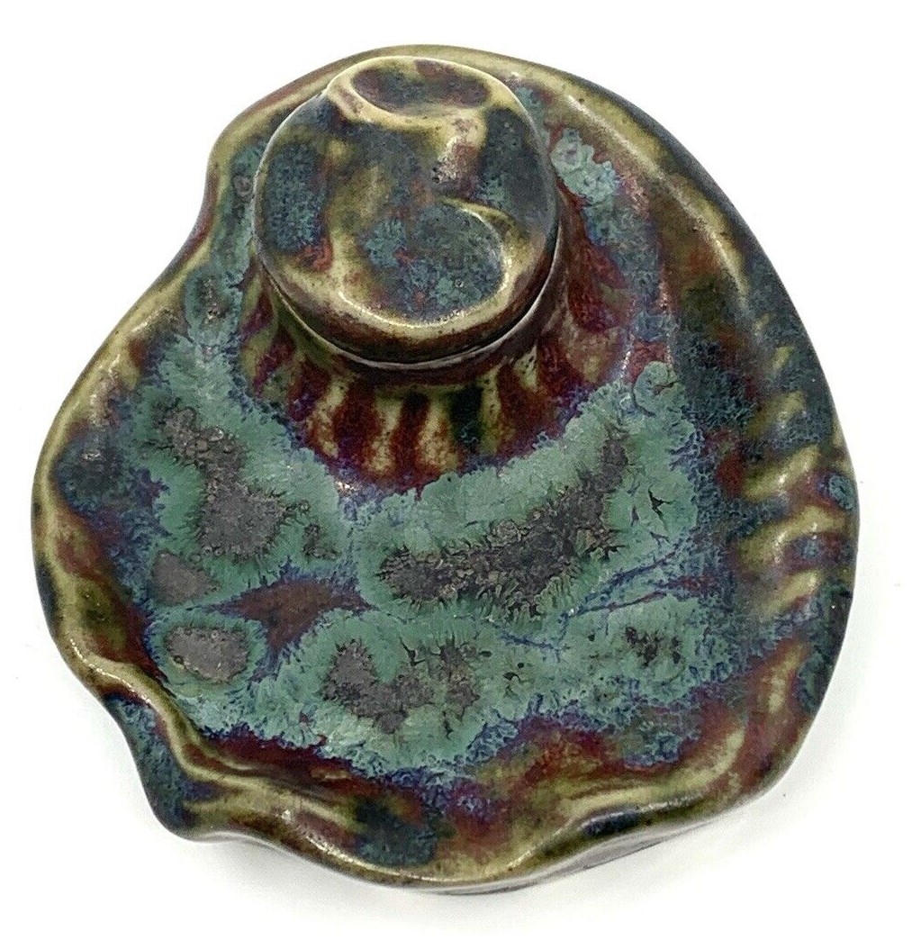 This is a superb and rare high fired pottery inkwell from one of the masters of French pottery of the late 19th century. Dalpayrat was among the greatest experimenters in complex glaze techniques and his pottery at Bourg-La-Reine produced work that was sold at La Maison Moderne in Paris and won medals at The Paris Salons. This piece has a wonderful range of color variation and is signed and numbered.