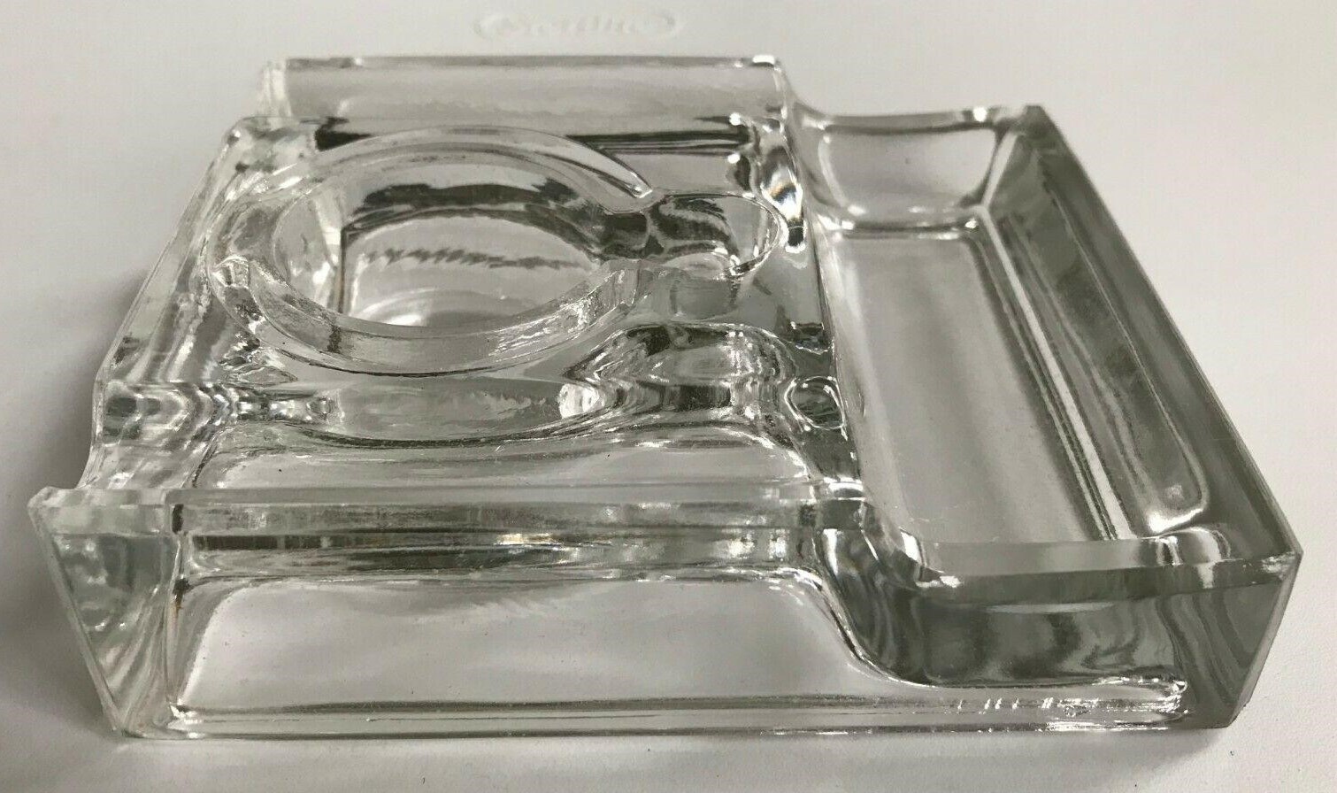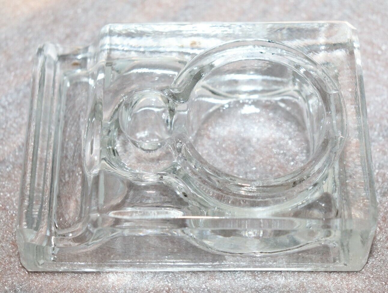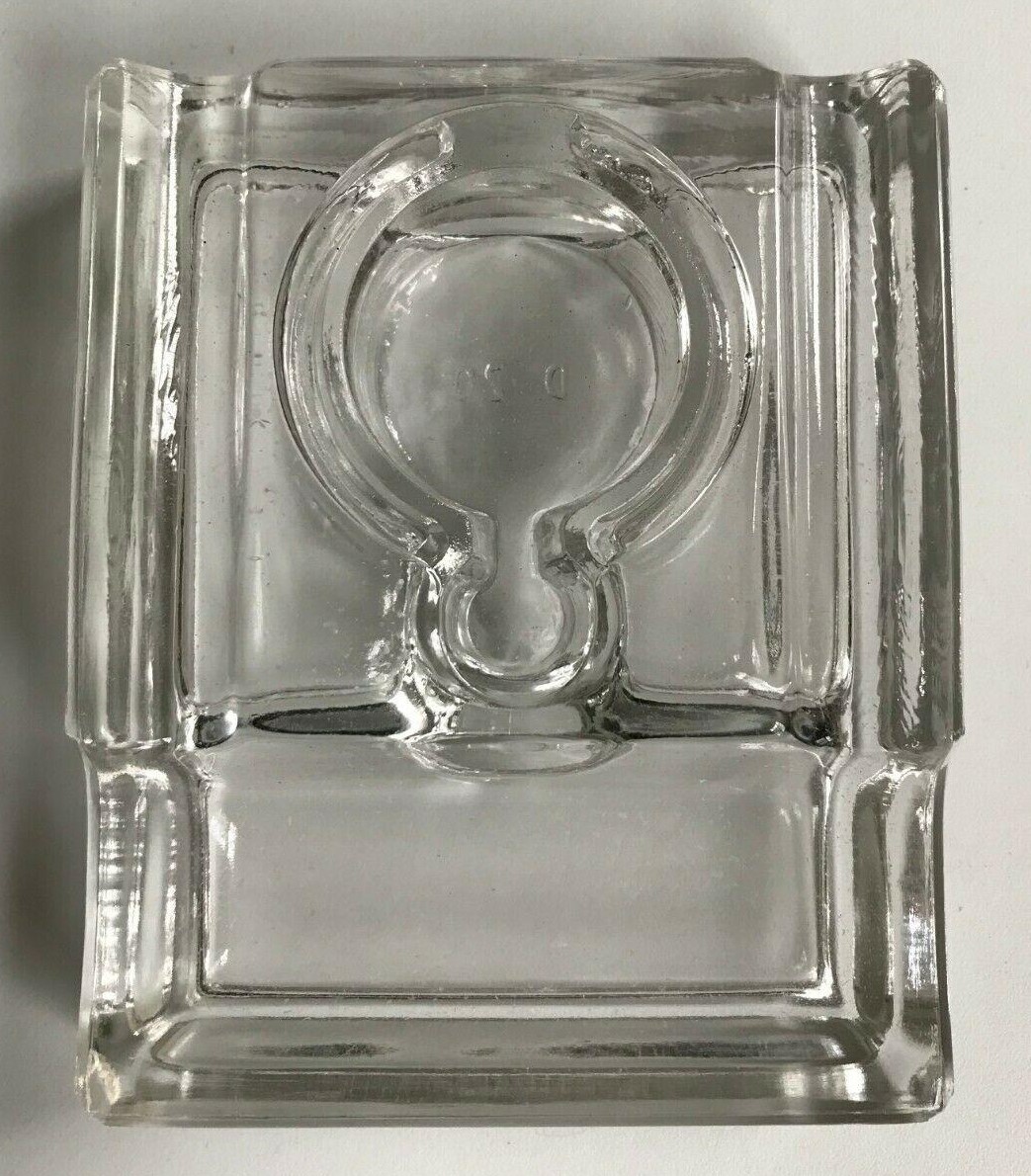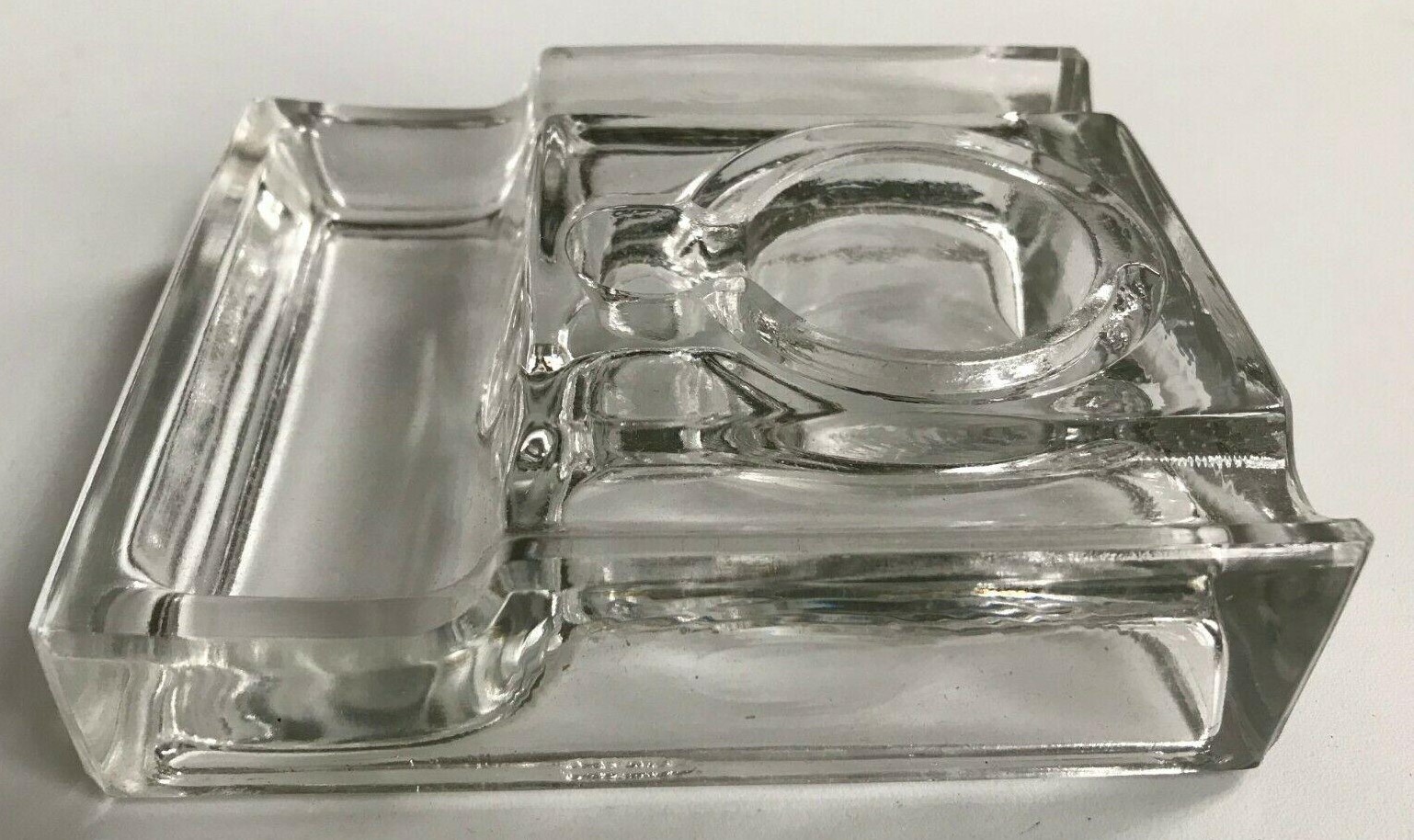 Example #2 is similar to example #1, except a recessed utility area replaces the pen wipe. The glass base is marked “No. 60-D”. 7 ¼” x 5” x 1 ½” high