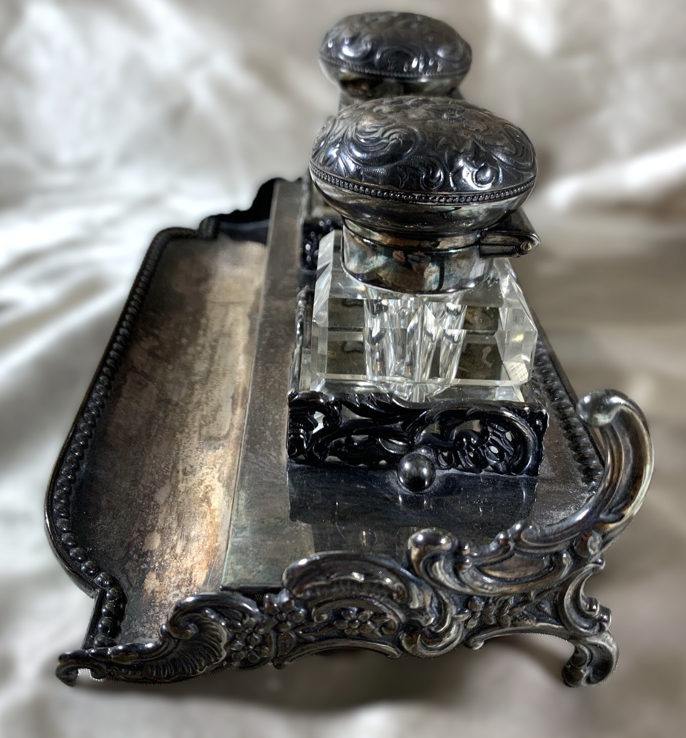 • Products: They produced a wide range of silver-plated goods, or hollowware, including tableware, tea sets, flatware, toiletware (dresser items), mirrors, clocks, and desk accessories like this inkstand.