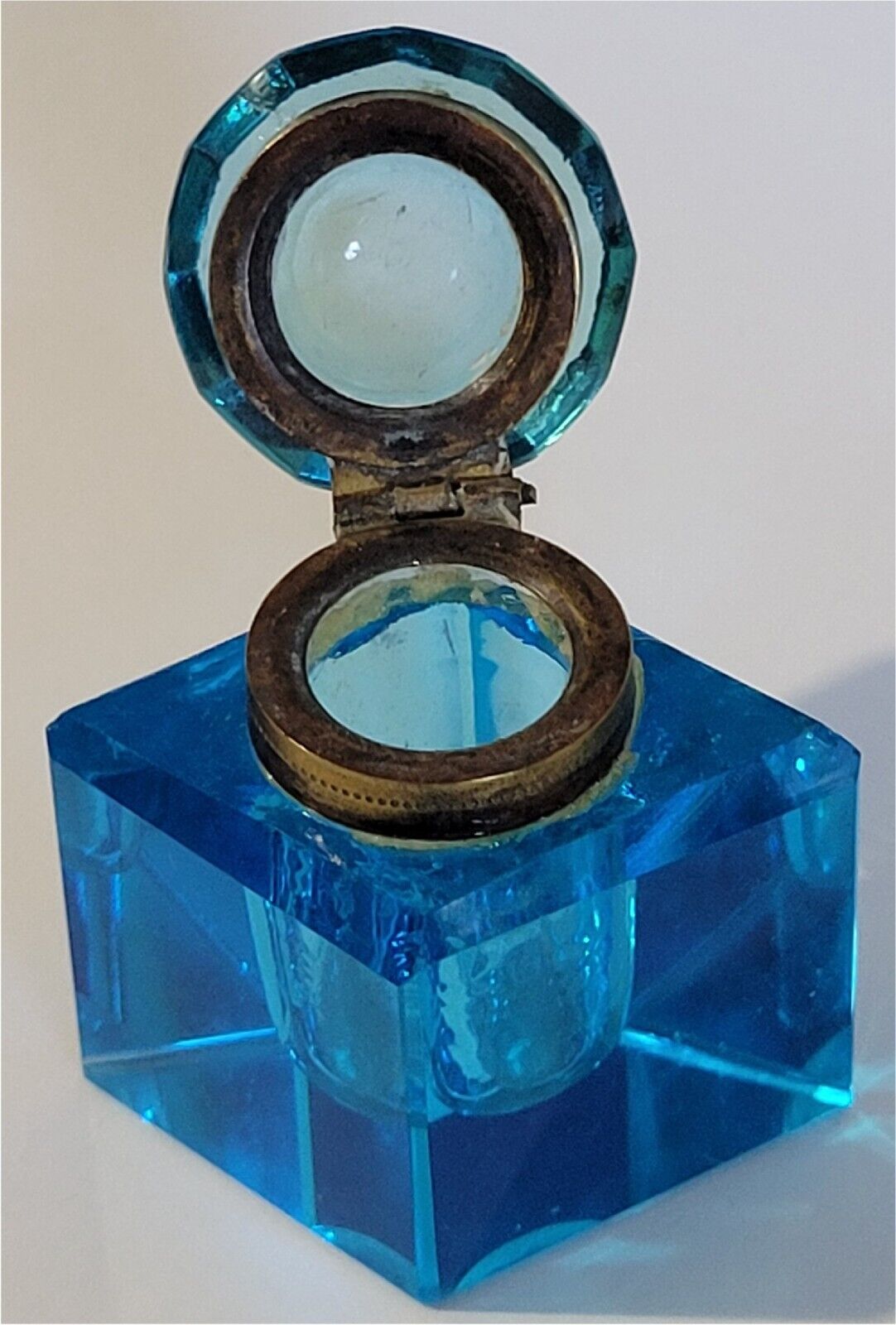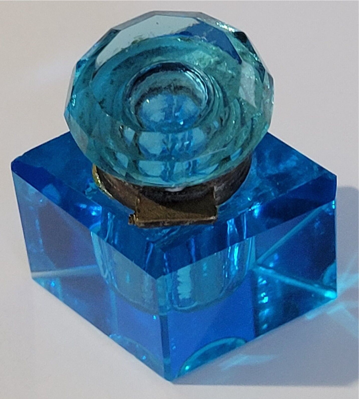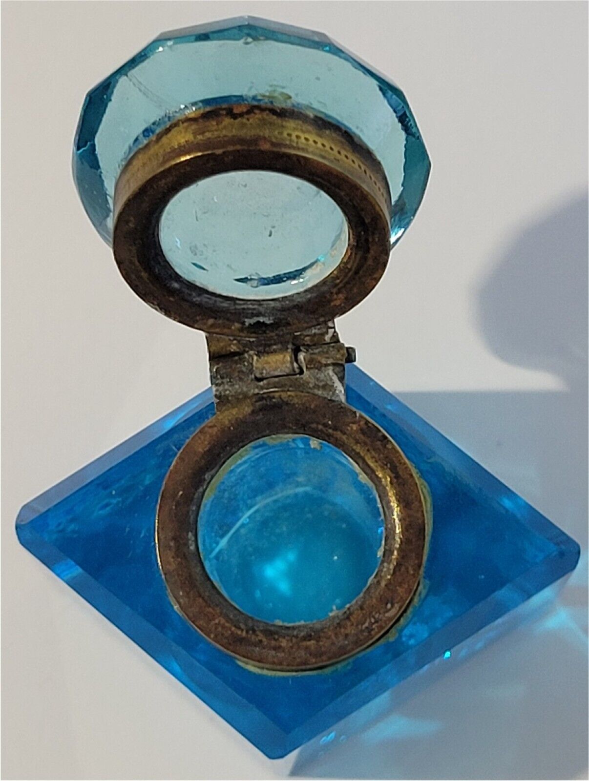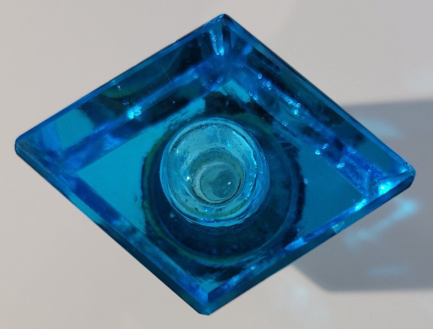 Diamond-Shaped Blue Glass Inkwell