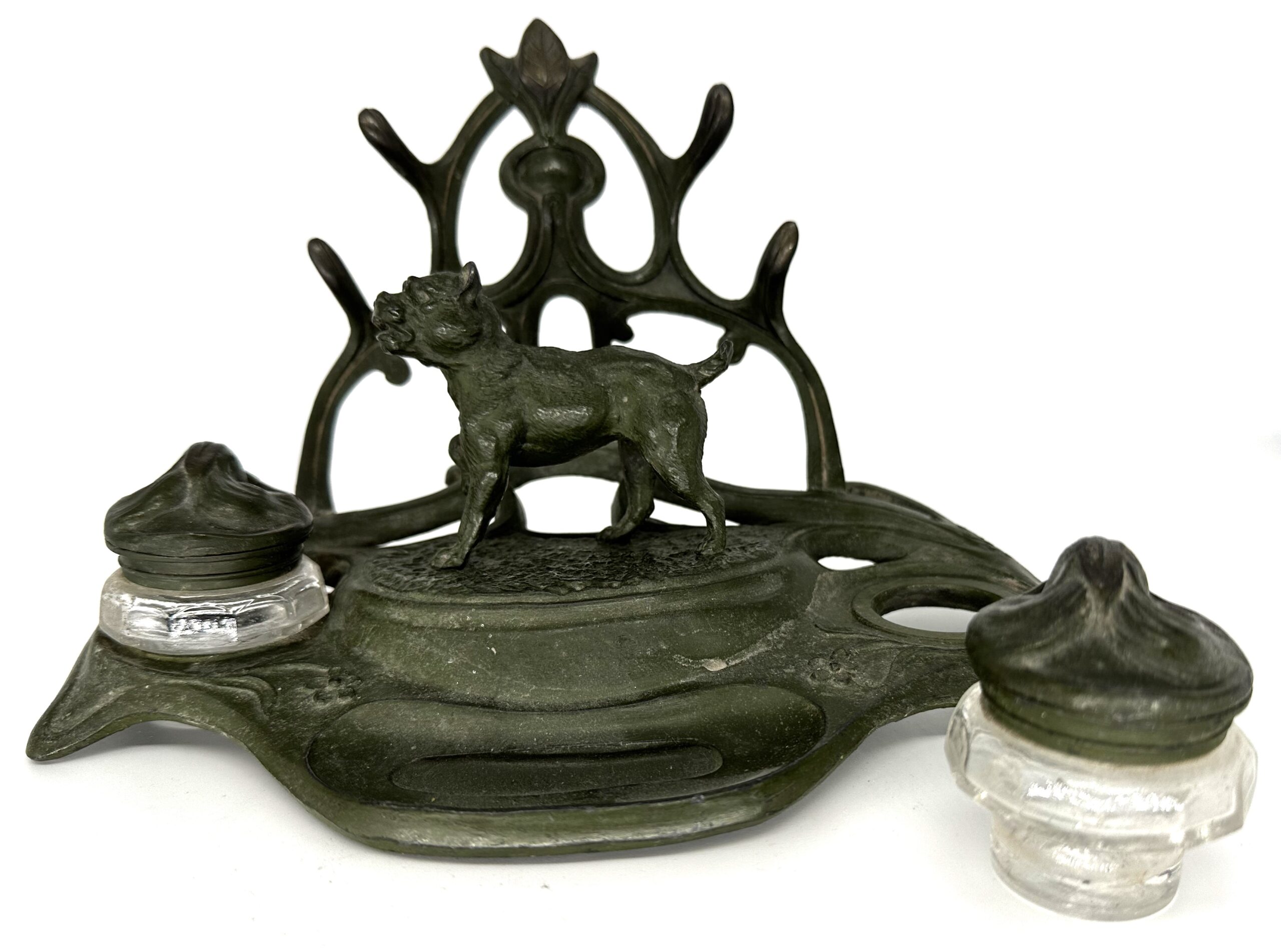 View similar: https://inkwellresearch.com/inkipedia/dog-bulldog-double-inkstand/?