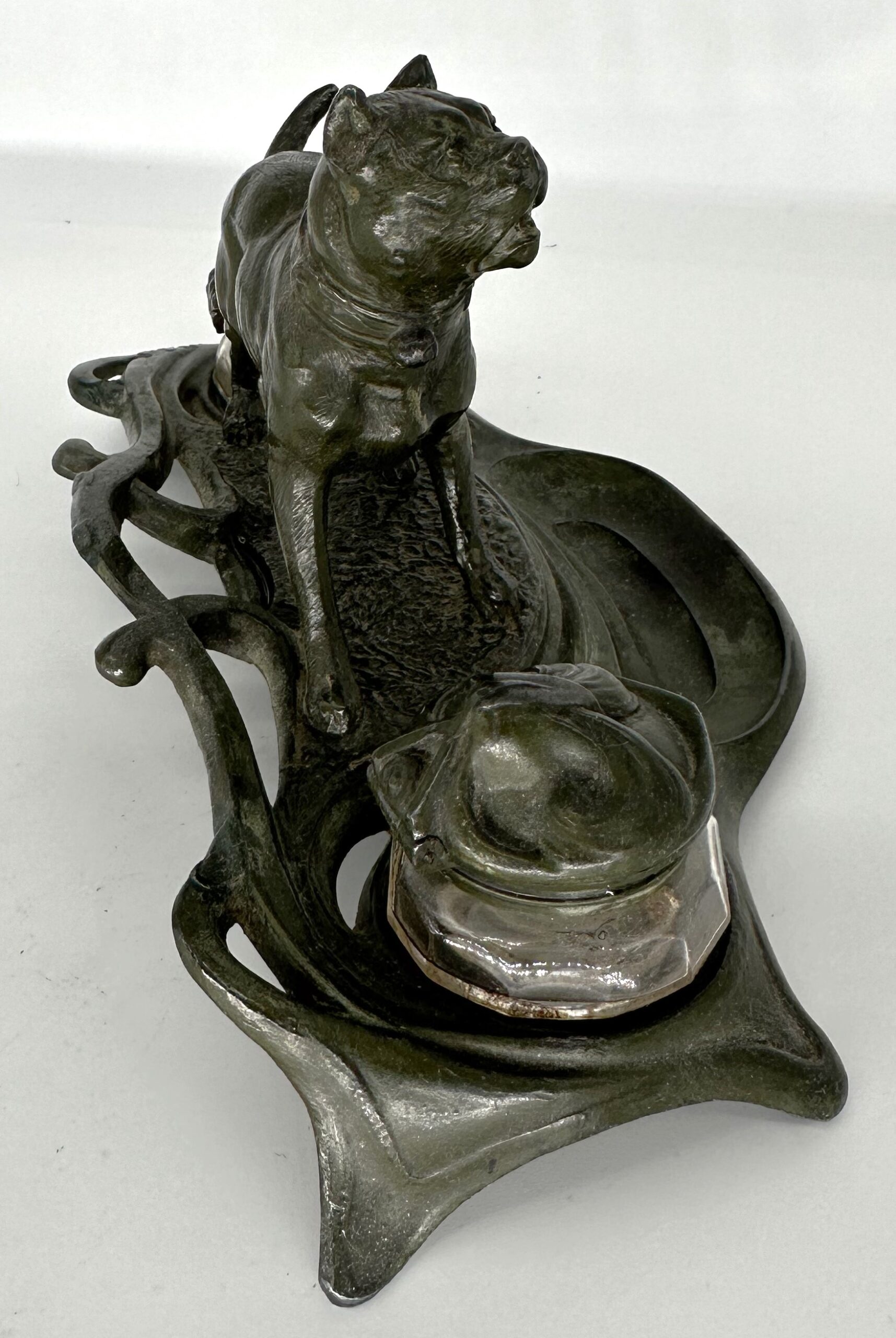 Review similar: https://inkwellresearch.com/inkipedia/dog-bulldog-double-inkstand-with-pen-rack/?