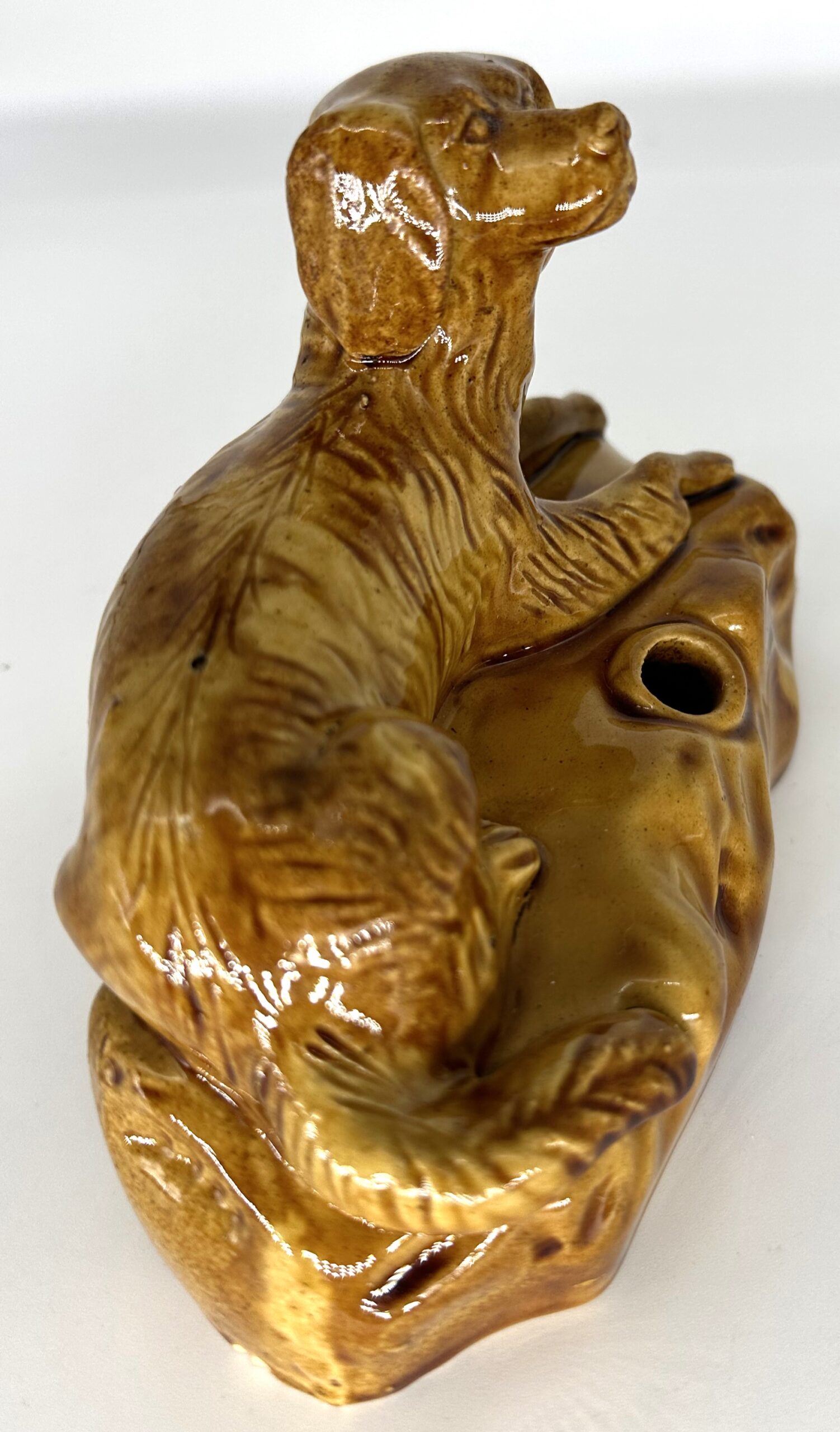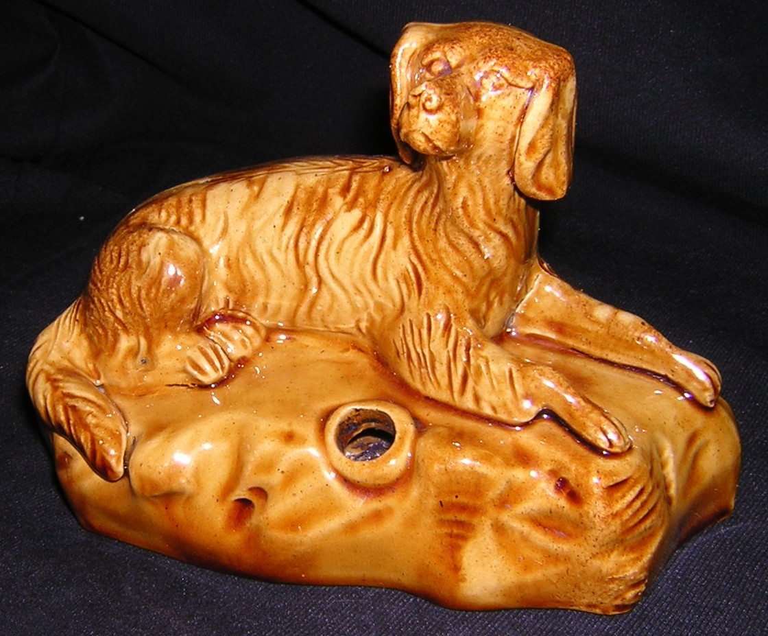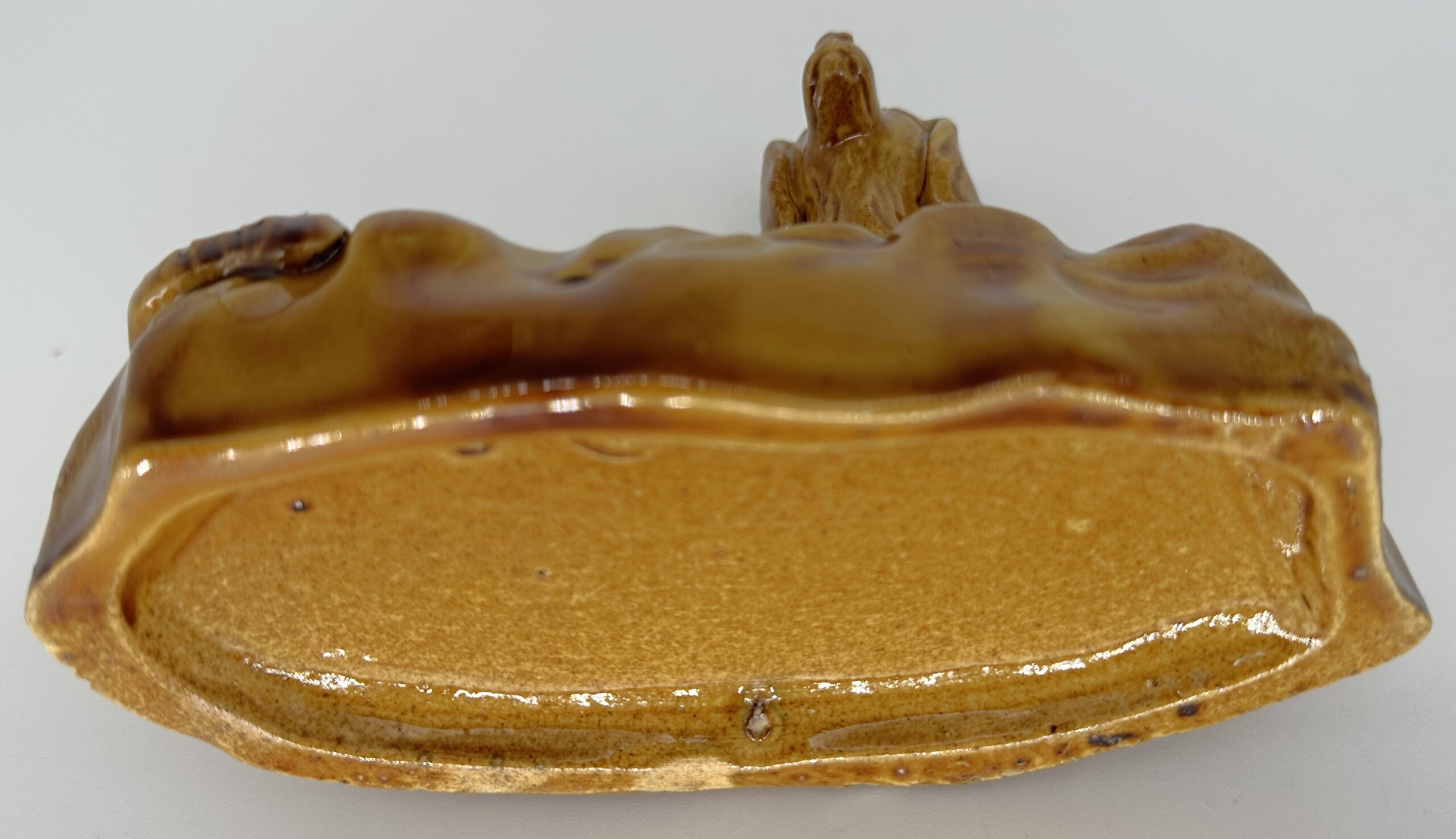19th Century English treacle glaze recumbent dog on base inkwell.