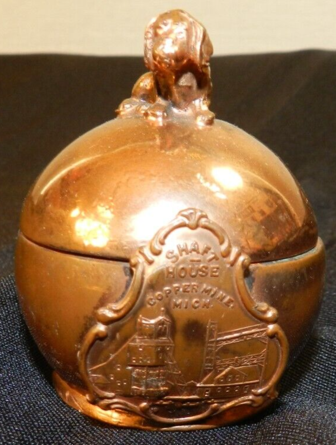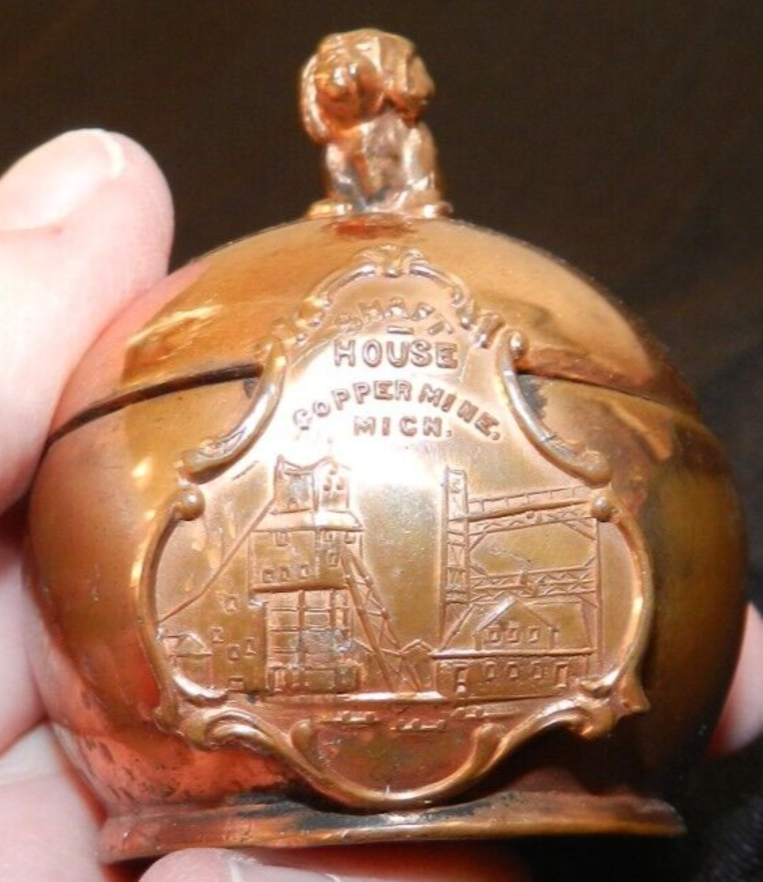 A second example shows this piece marked as a souvenir of Shaft House Copper Mines in Michigan.