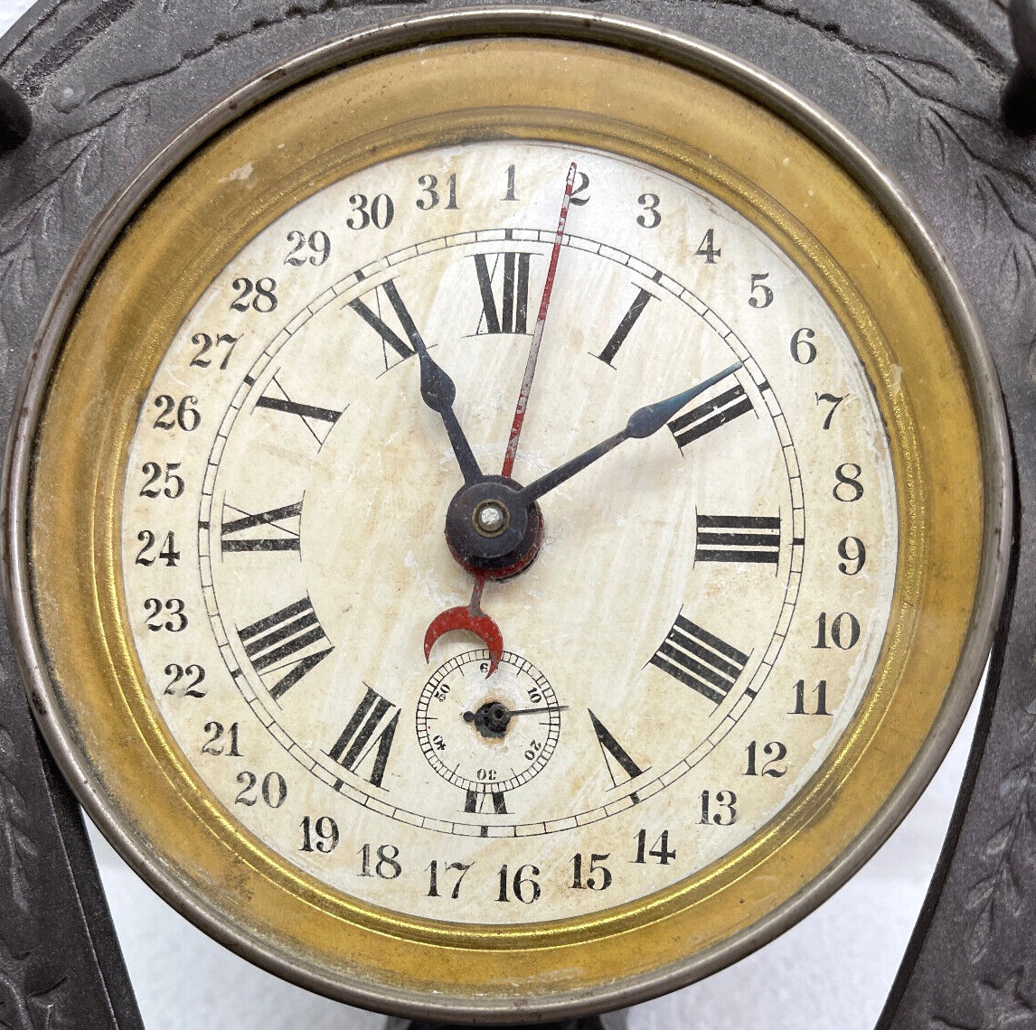 The combination clock / calendar has 31 Arabic numerals for the days of the month on the outer ring. The 30-hour clock has Roman numerals along with a small hourly indicator. The clock shows a patent date of Oct 29, 1878.