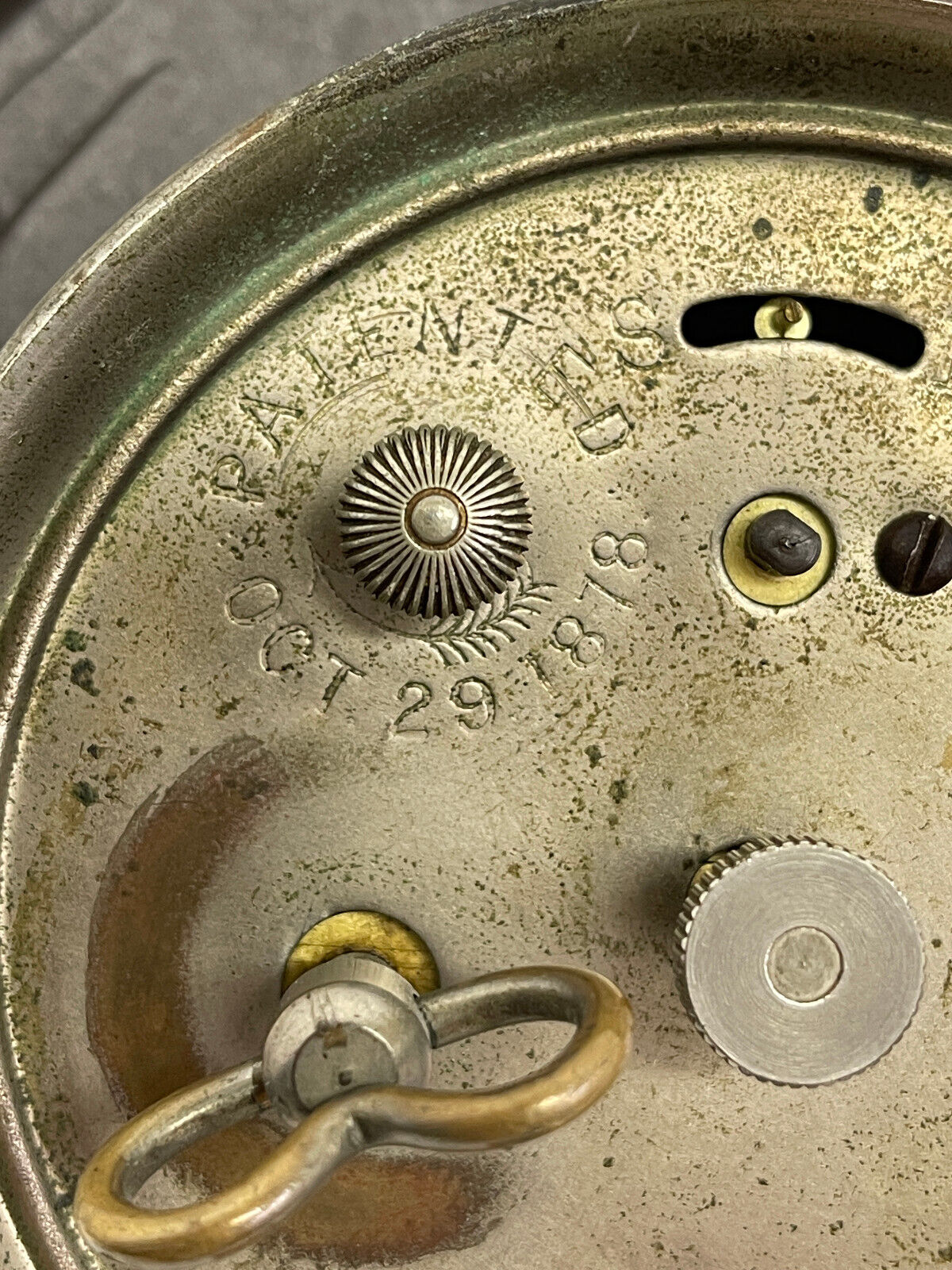 Patent | The clock shows a patent date of Oct 29, 1878. |