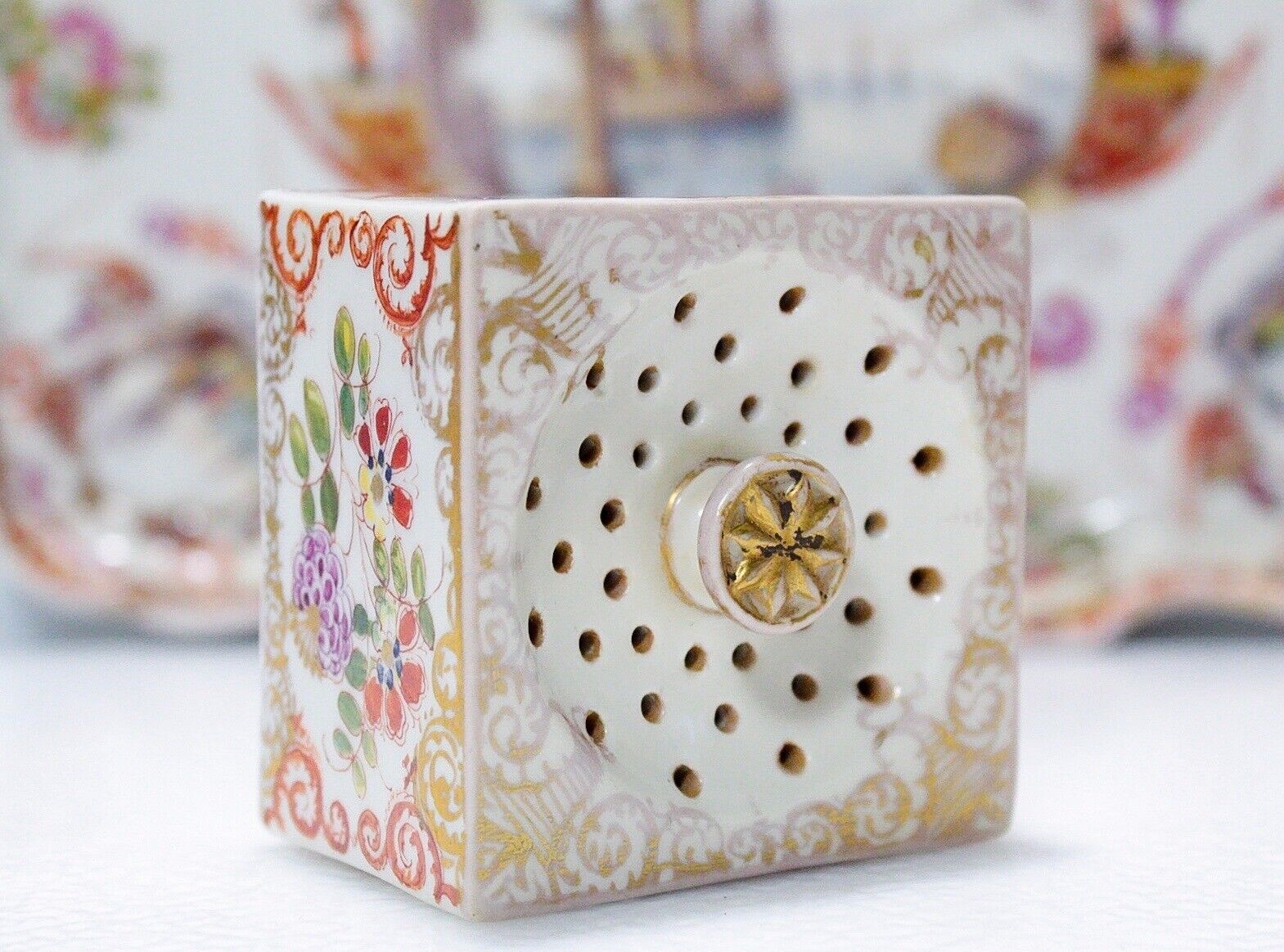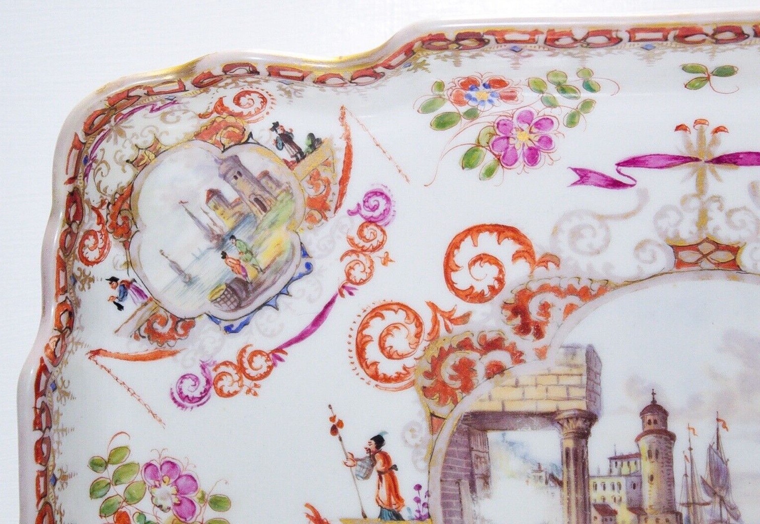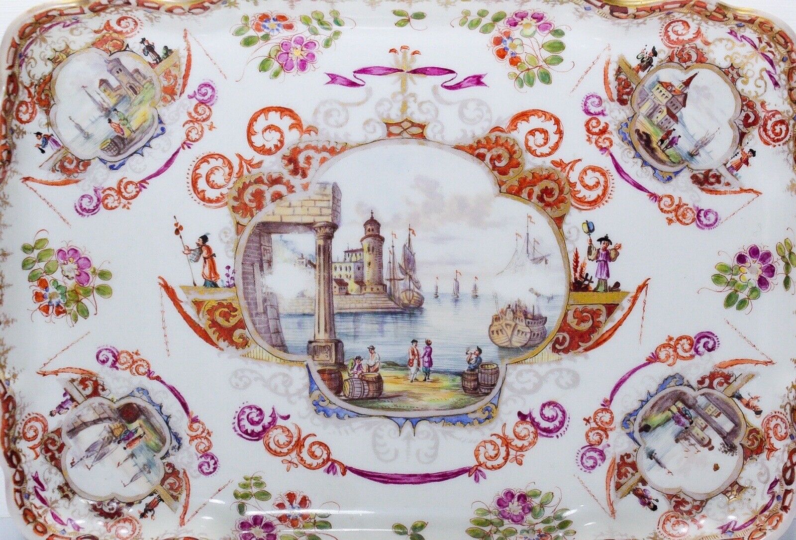 The “A.R.” (Augustus Rex) mark on the tray is a derivative of an early Meissen mark. Helena Wolfsohn had a porcelain decorating business which used a wide array of blanks from other companies. In 1878 Leopold Elb took over the Wolfsohn studio and copied the mark registered by KPM (Königliche Porzellan Manufaktur – Royal Porcelain Factory). KPM appealed for court intervention which forced the studio to stop using the mark in 1883.