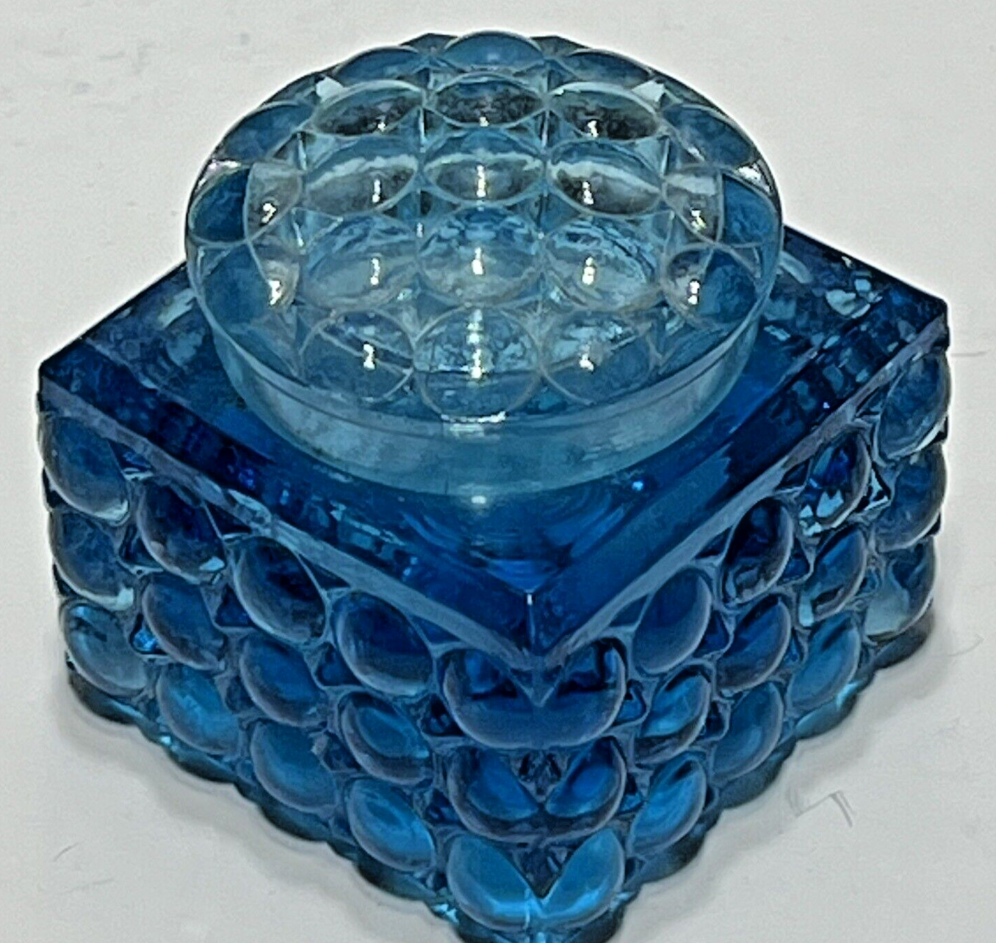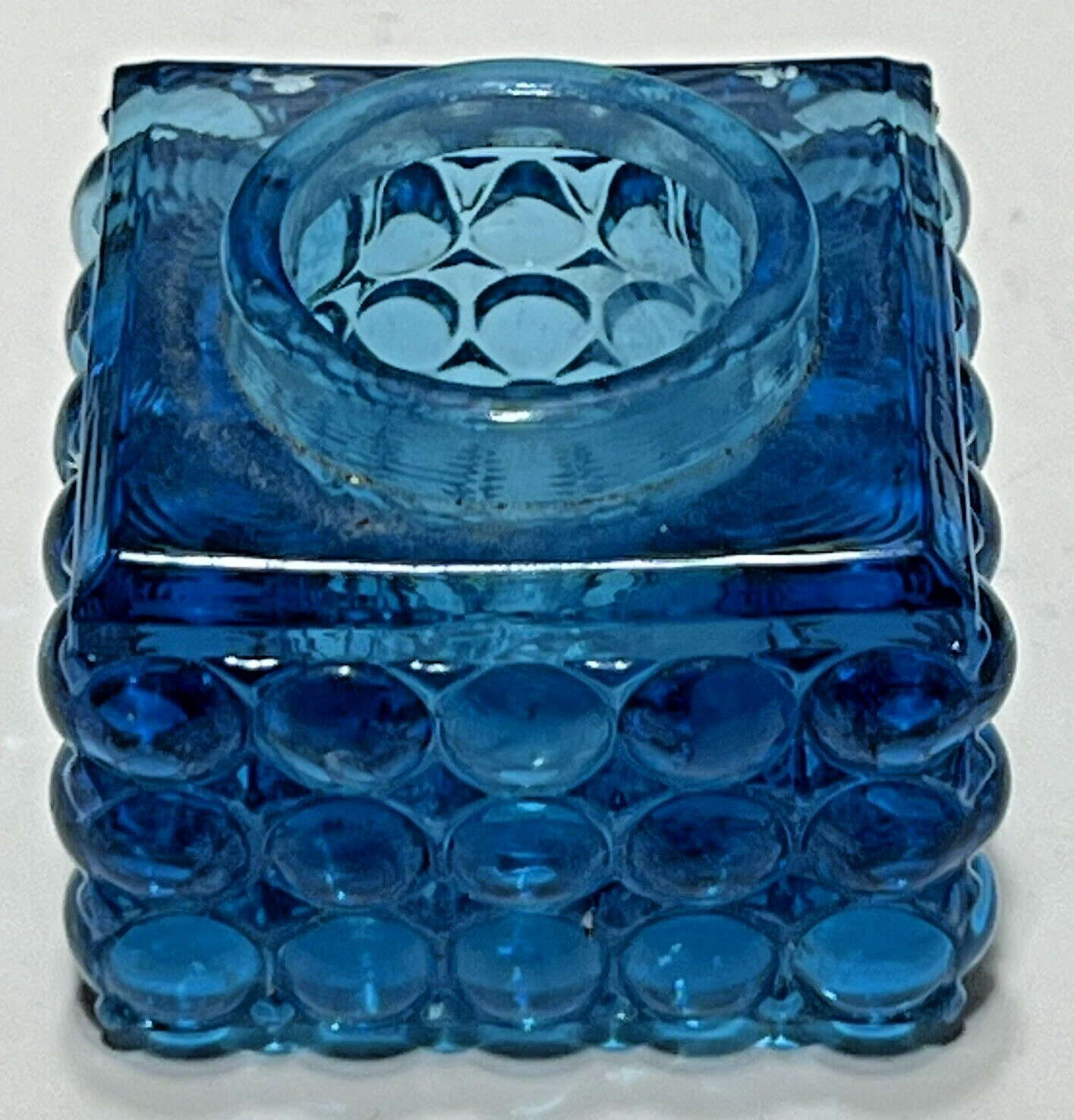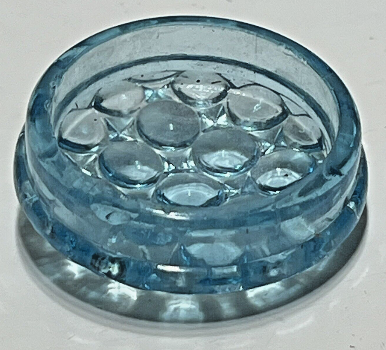 I believe this Early American Pressed Glass (EAPG) inkwell was made by Adams & Co. in the “Thousand Eye” pattern. Adams & Co. is a glass company that operated in Pittsburgh, PA from 1861 to 1891.