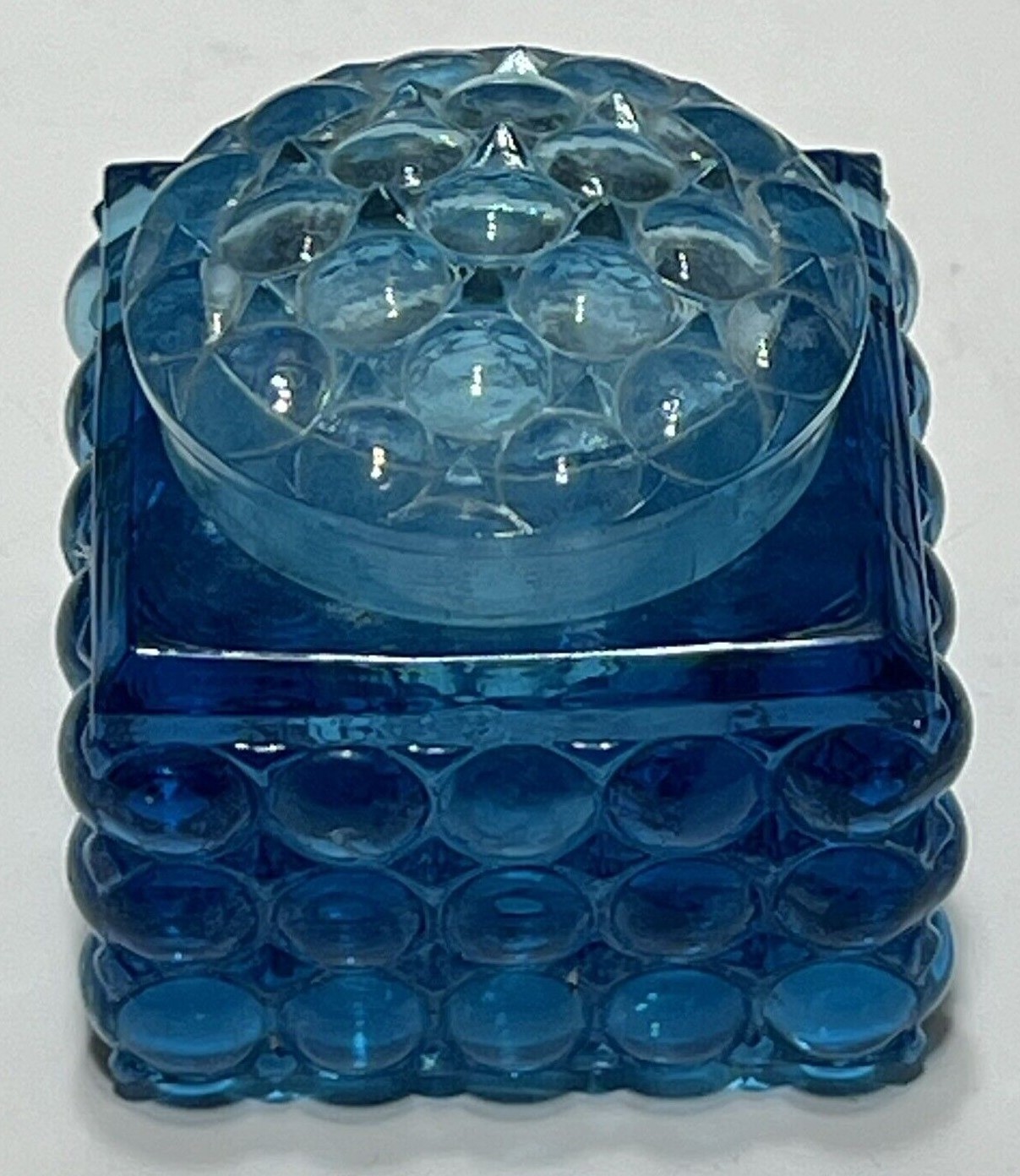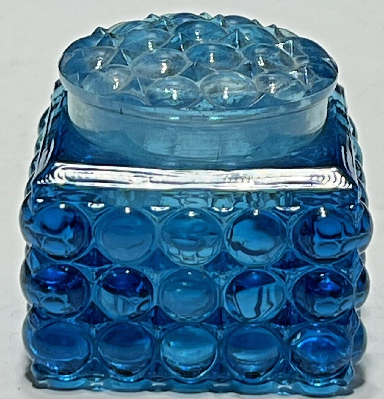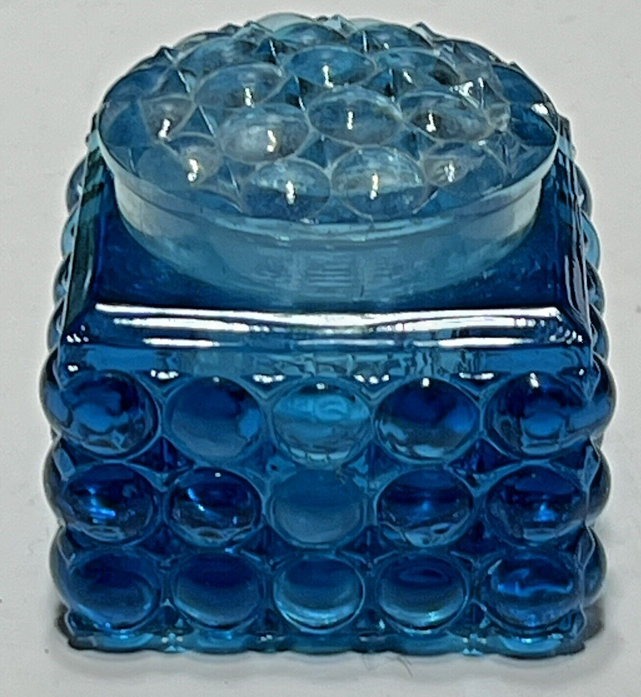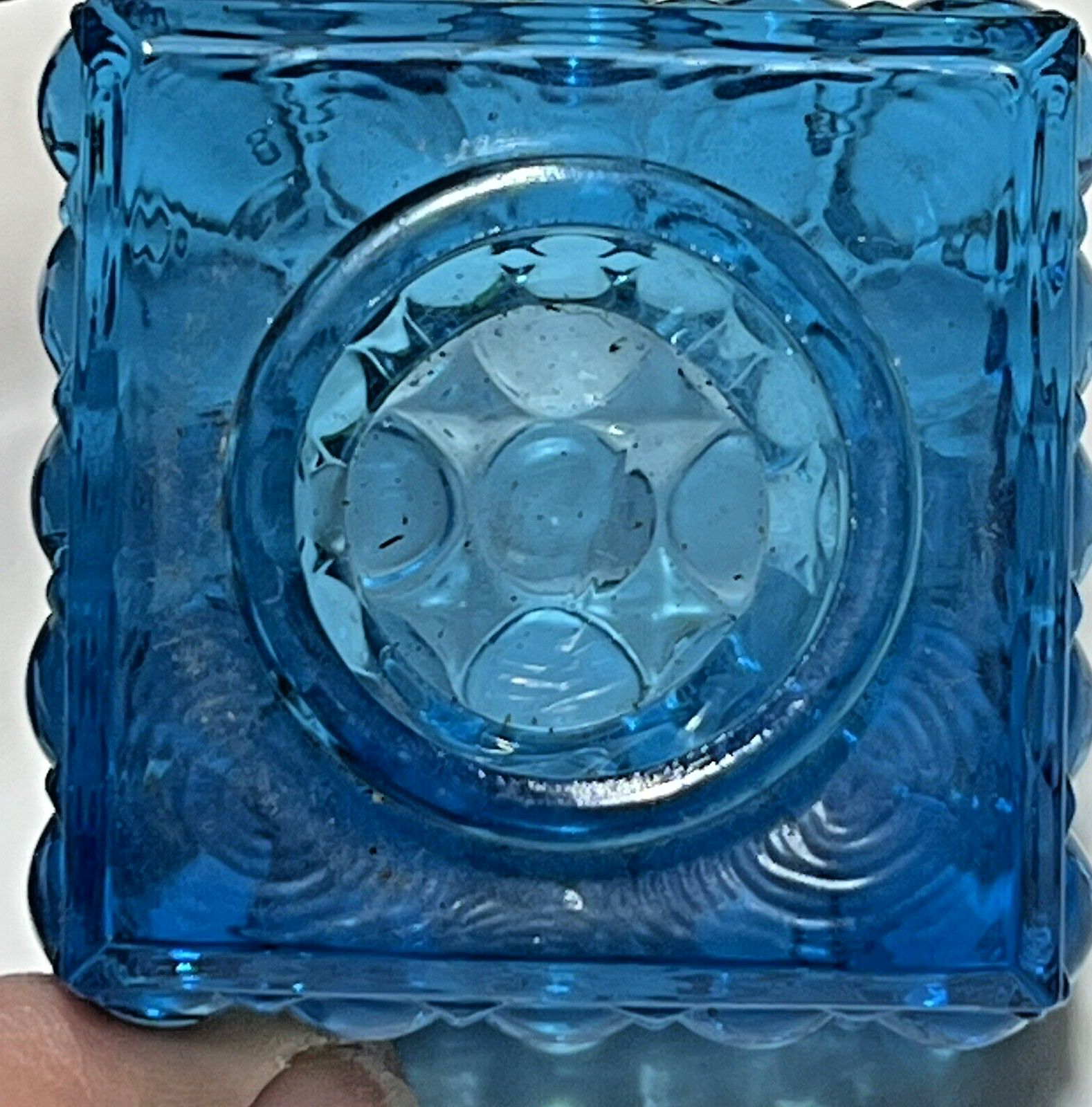 I believe this Early American Pressed Glass (EAPG) inkwell was made by Adams & Co. in the “Thousand Eye” pattern. Adams & Co. is a glass company that operated in Pittsburgh, PA from 1861 to 1891.