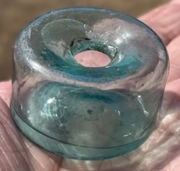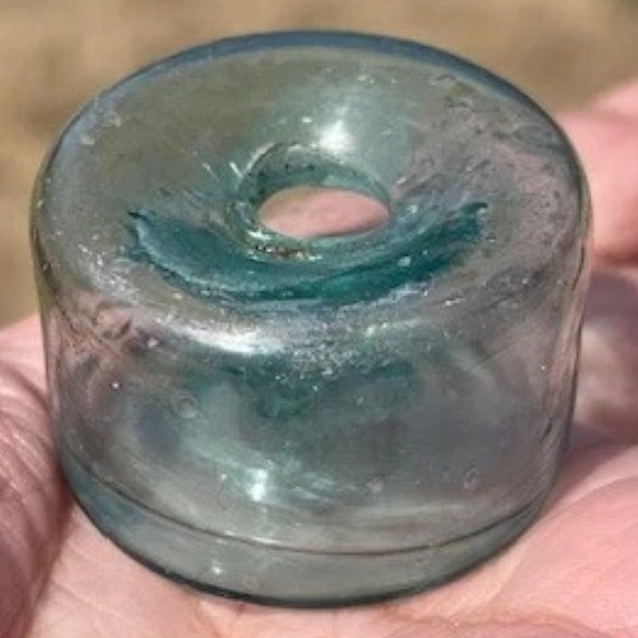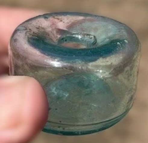 This bottle was dug in Charleston SC at a housing dating from 1760. This is an early and delicate cylindrical “puff” or “squat” ink bottle, likely dating from the late 18th to early 19th century (c. 1780–1820). Given the location (Charleston) and the house’s history (1760), this bottle fits perfectly into the era of handcrafted, utilitarian glass that was often imported from England or produced in very early American glasshouses.