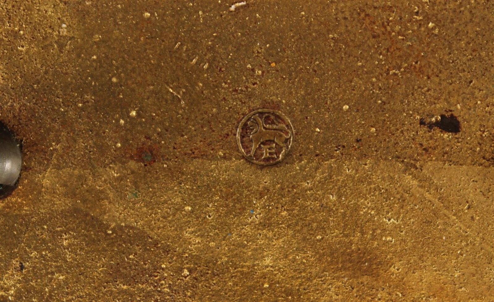 - Manufacturer Mark: The underside of the base is marked by “Erhard & Söhne.” This German firm was renowned for its high-quality metalwork and decorative objects, particularly during the 19th and early 20th centuries, often working in Revival styles.