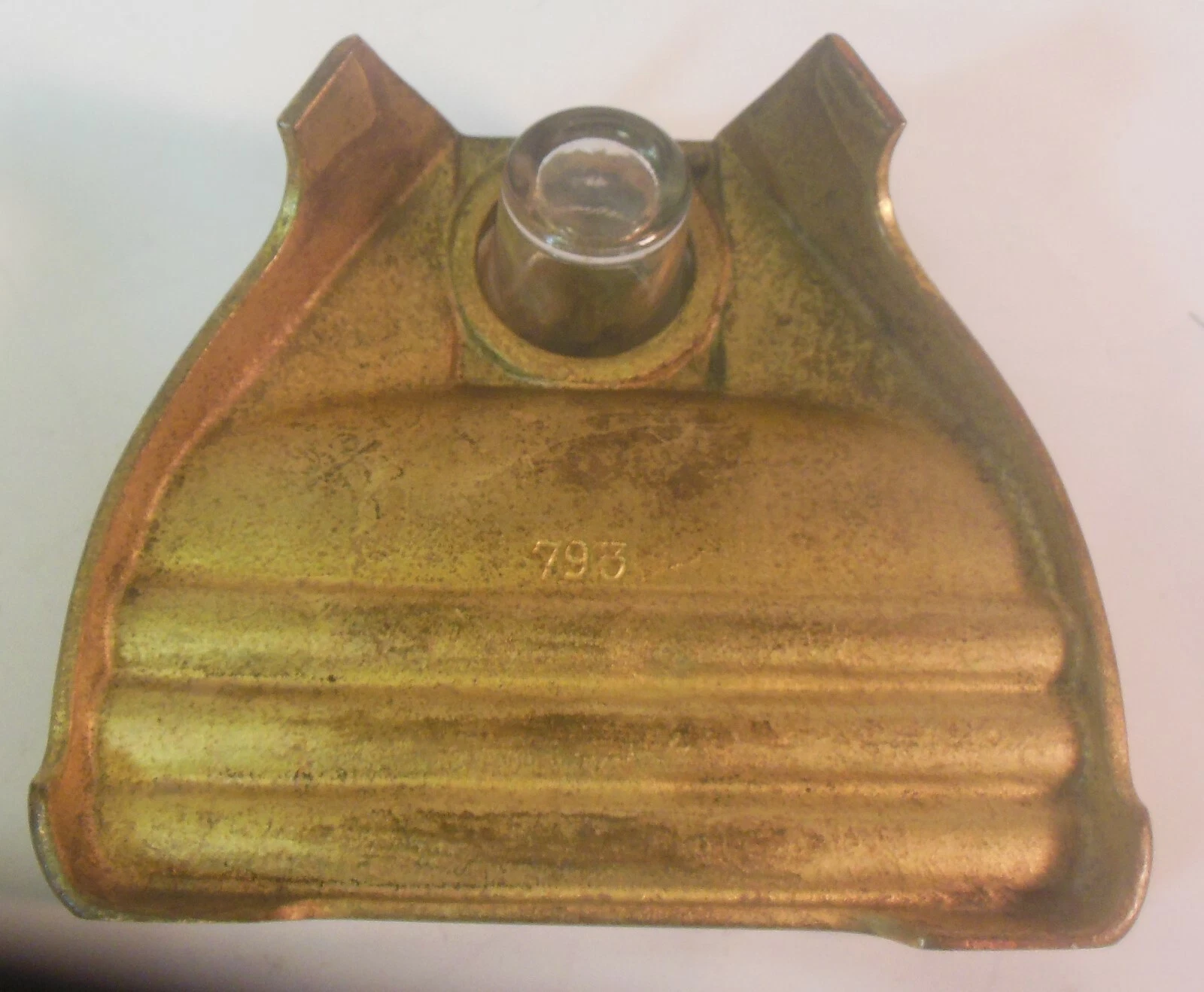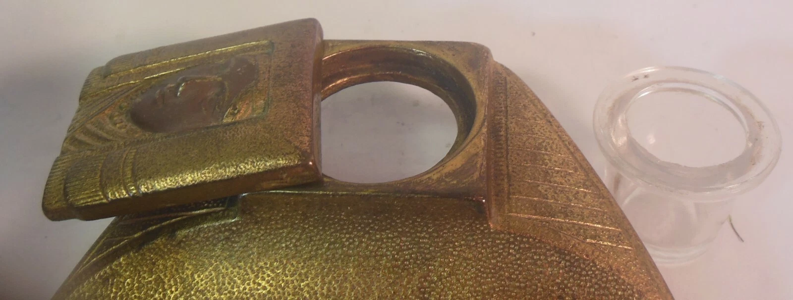 - Mechanism: The swivel lid is a hallmark of Jennings Brothers figural inkwells; while many of their competitors (like Bradley & Hubbard) favored traditional hinges, J.B. often used a single-pin swivel to maintain the sculptural integrity of the piece.