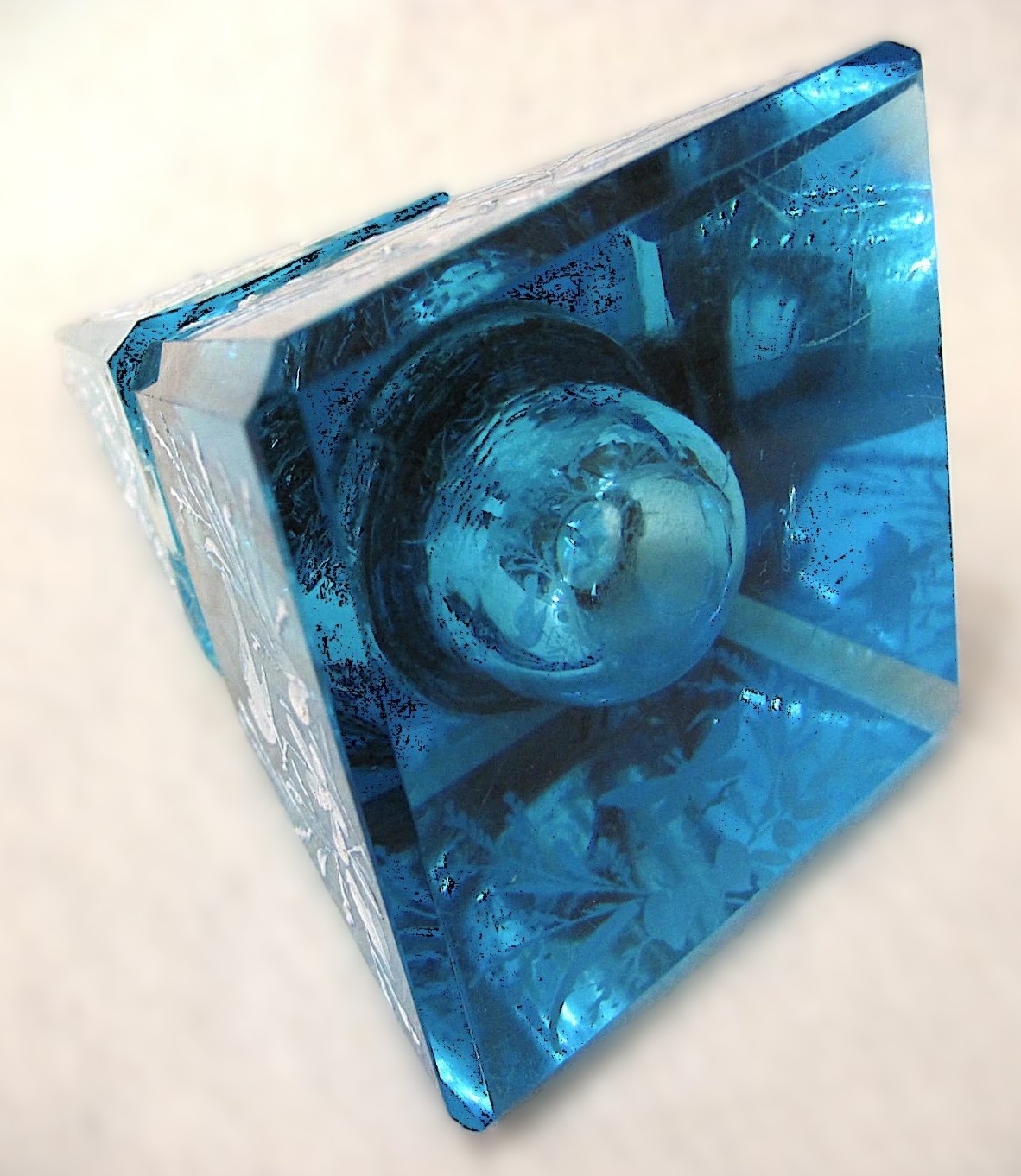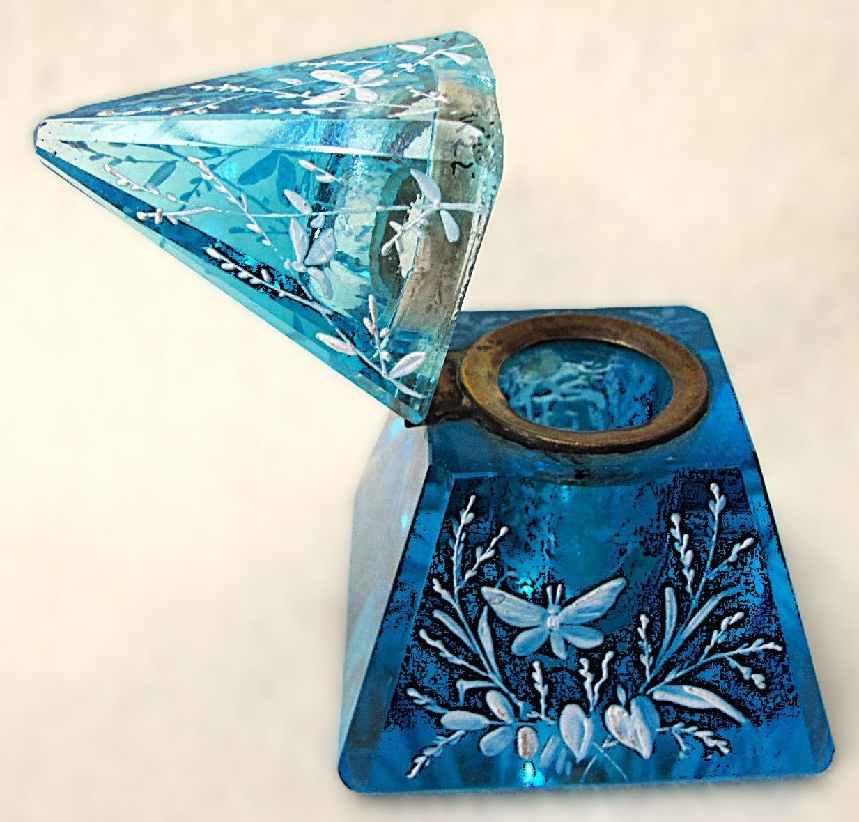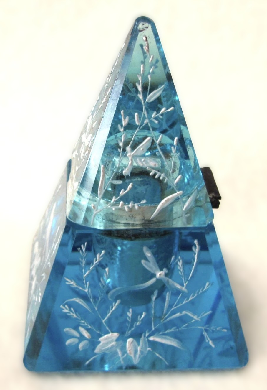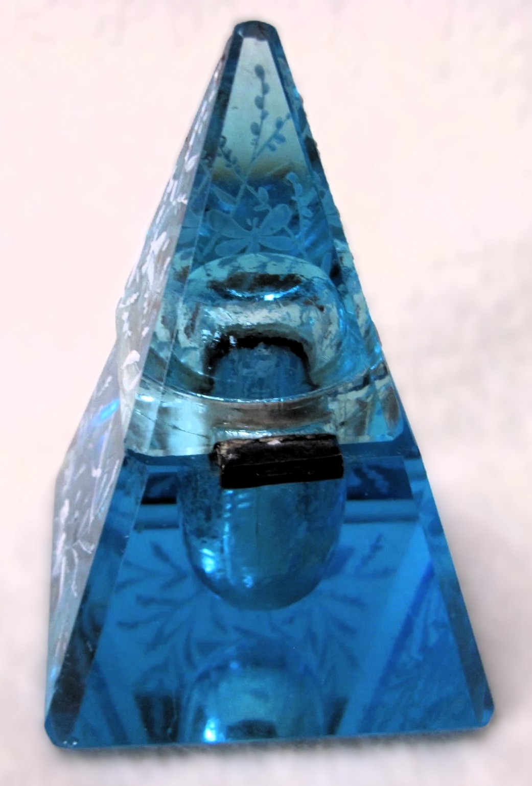 Enameled Blue Glass Pyramidal Inkwell