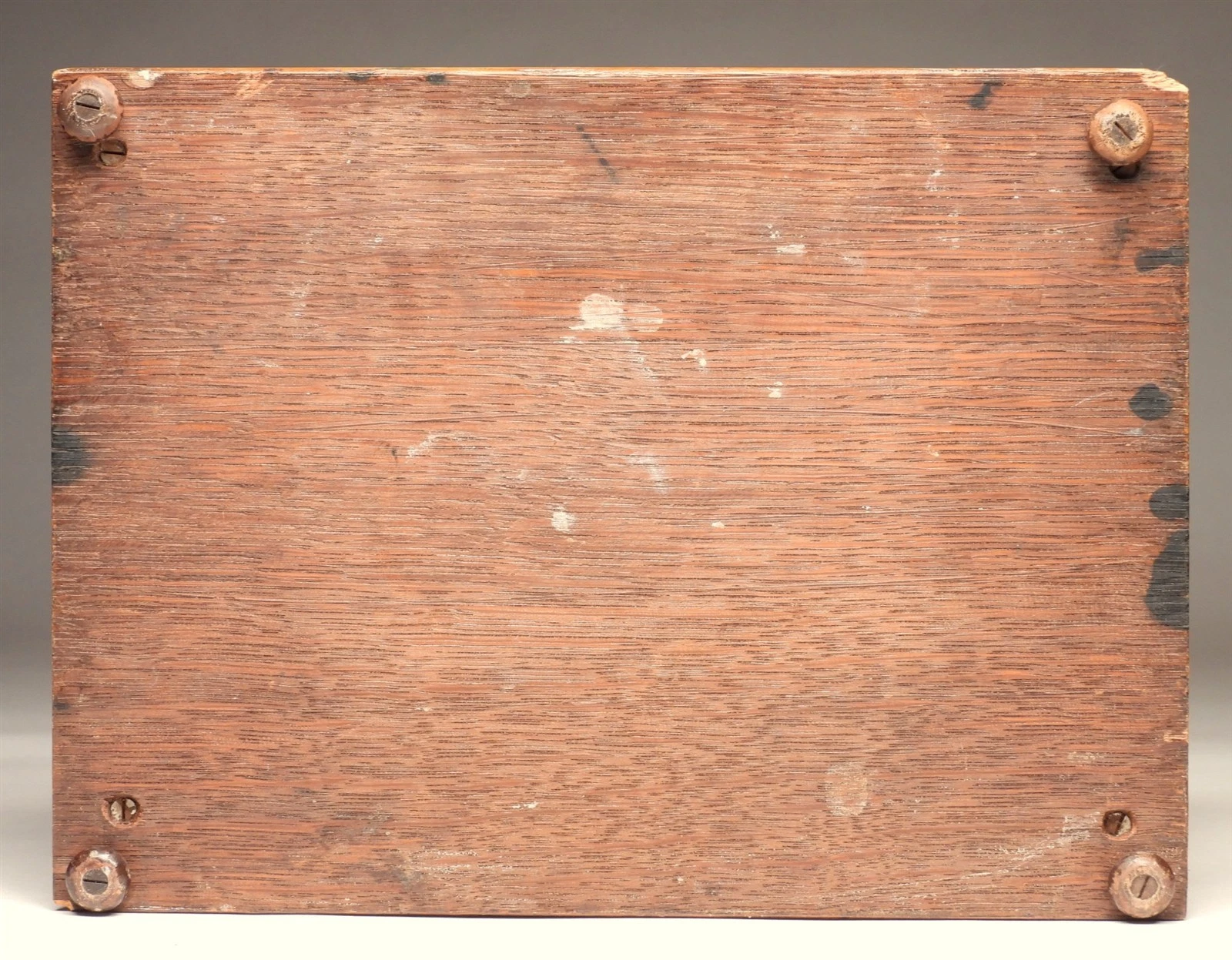 - The Facade: Below the slope, the vertical face is fitted with two vertical brass slide-in rails. While often used for a rotating perpetual calendar, these could also secure a daily memo card or a small photograph.
