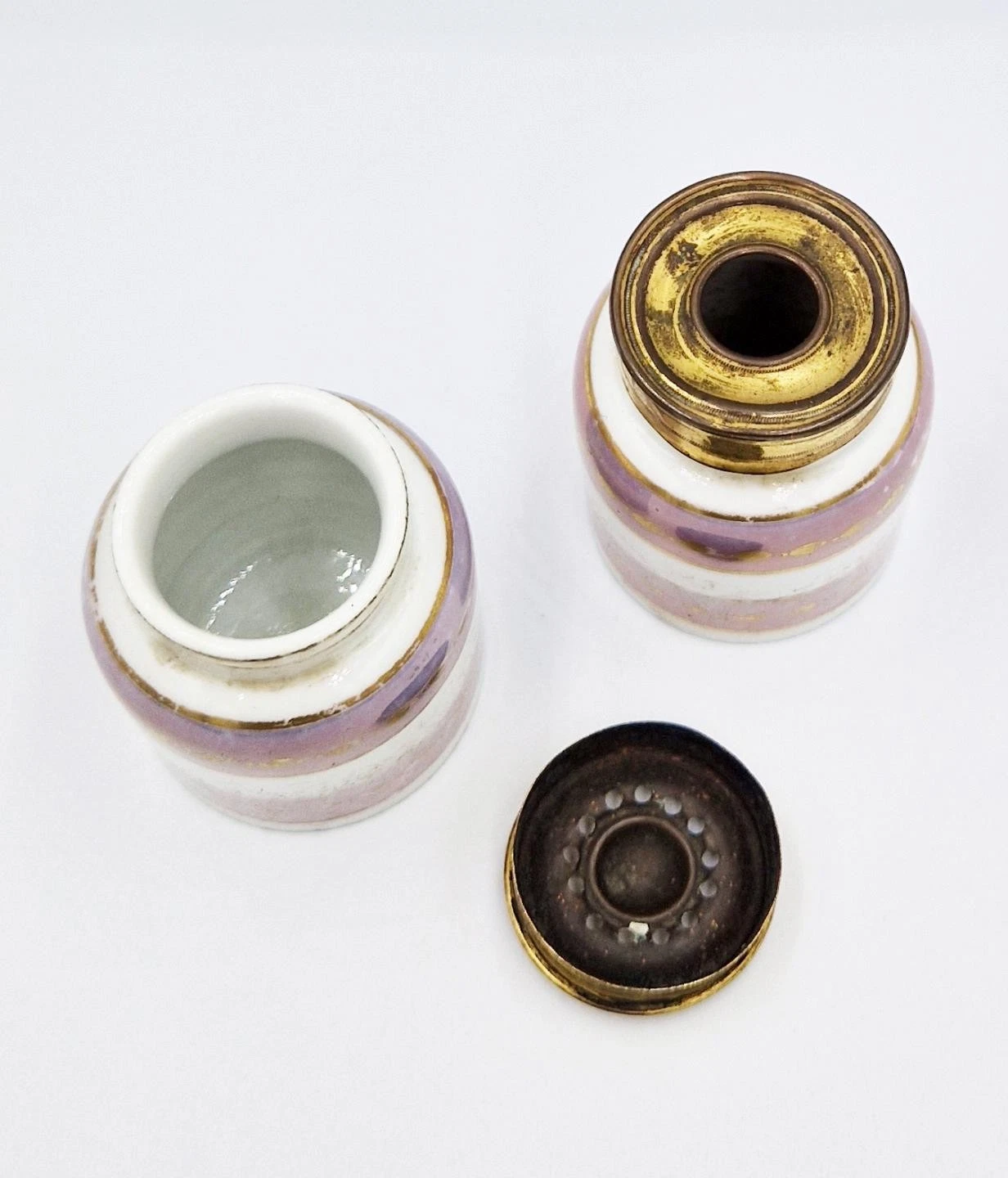 • The Pots: Two removable porcelain jars, likely made in Staffordshire.