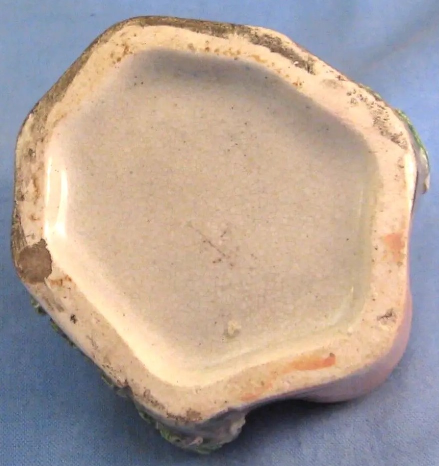 It is believed this inkwell is based on a caricature drawing of Robert Walpole (1676-1745) the Whig Politician who is regarded as the first Prime Minister of Great Britain staying in post for over 20 years. Apparently, Walpole was a master at getting his own way through prevarication wearing down the opposition. It worked. He was in the post for 20 years.