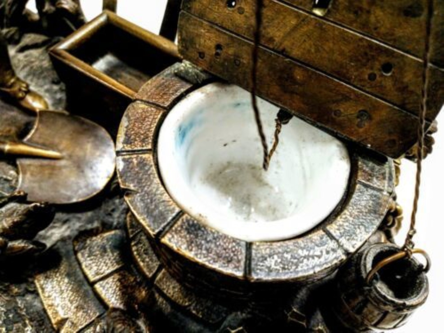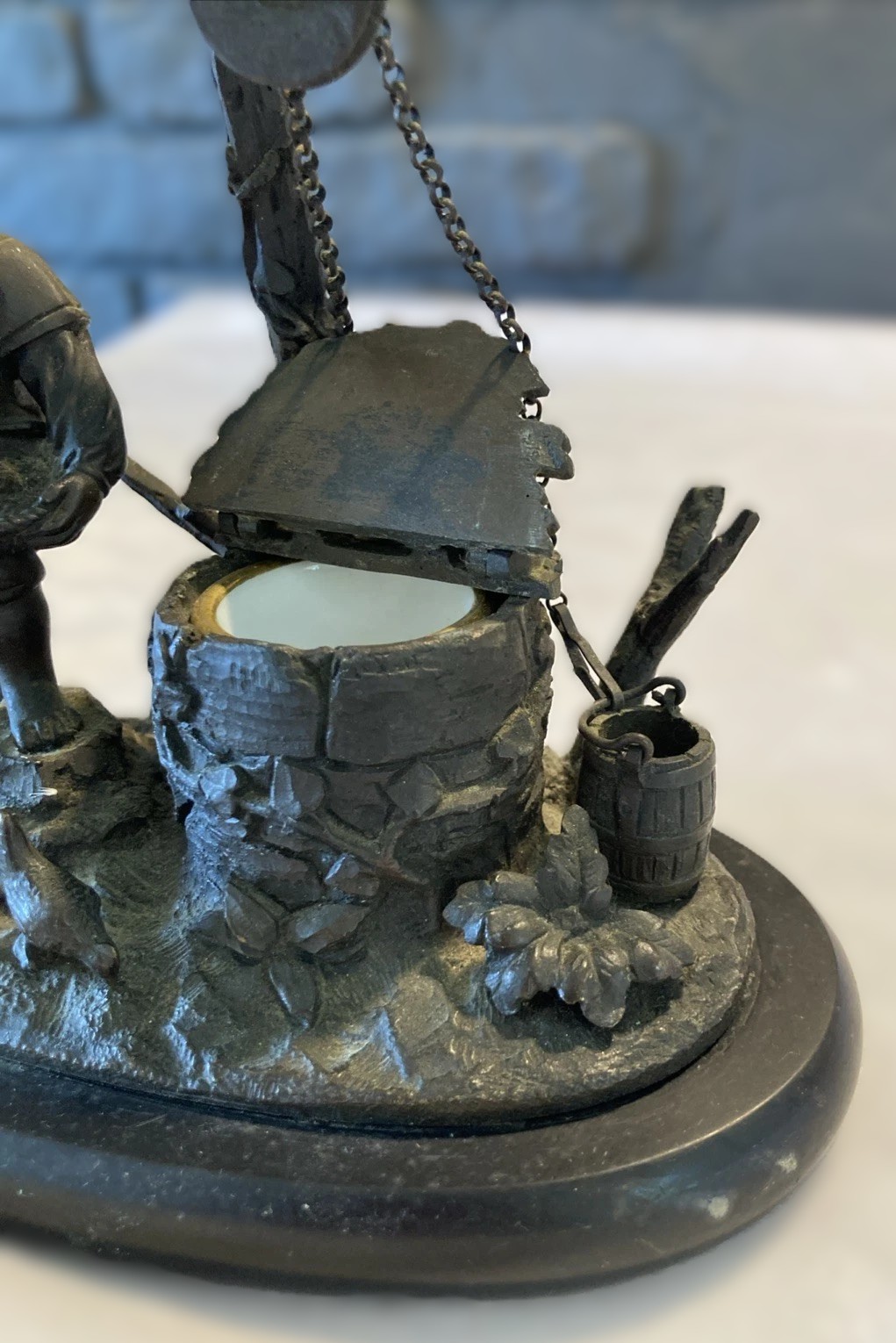 - Design: The inkwell is cleverly disguised as a brick water well.