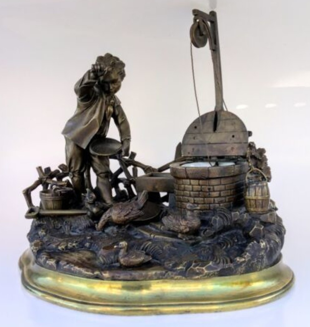 - The Evidence: The figure of the boy, the ducks, and the brick well are almost identical castings. This confirms they were produced by the same French foundry.